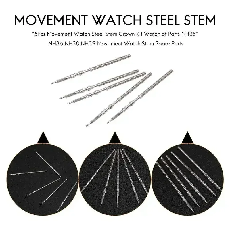 - Contains 10 stainless steel watch stems designed for NH35, NH36, NH38, NH39 movements, offering reliable compatibility across various watch models.