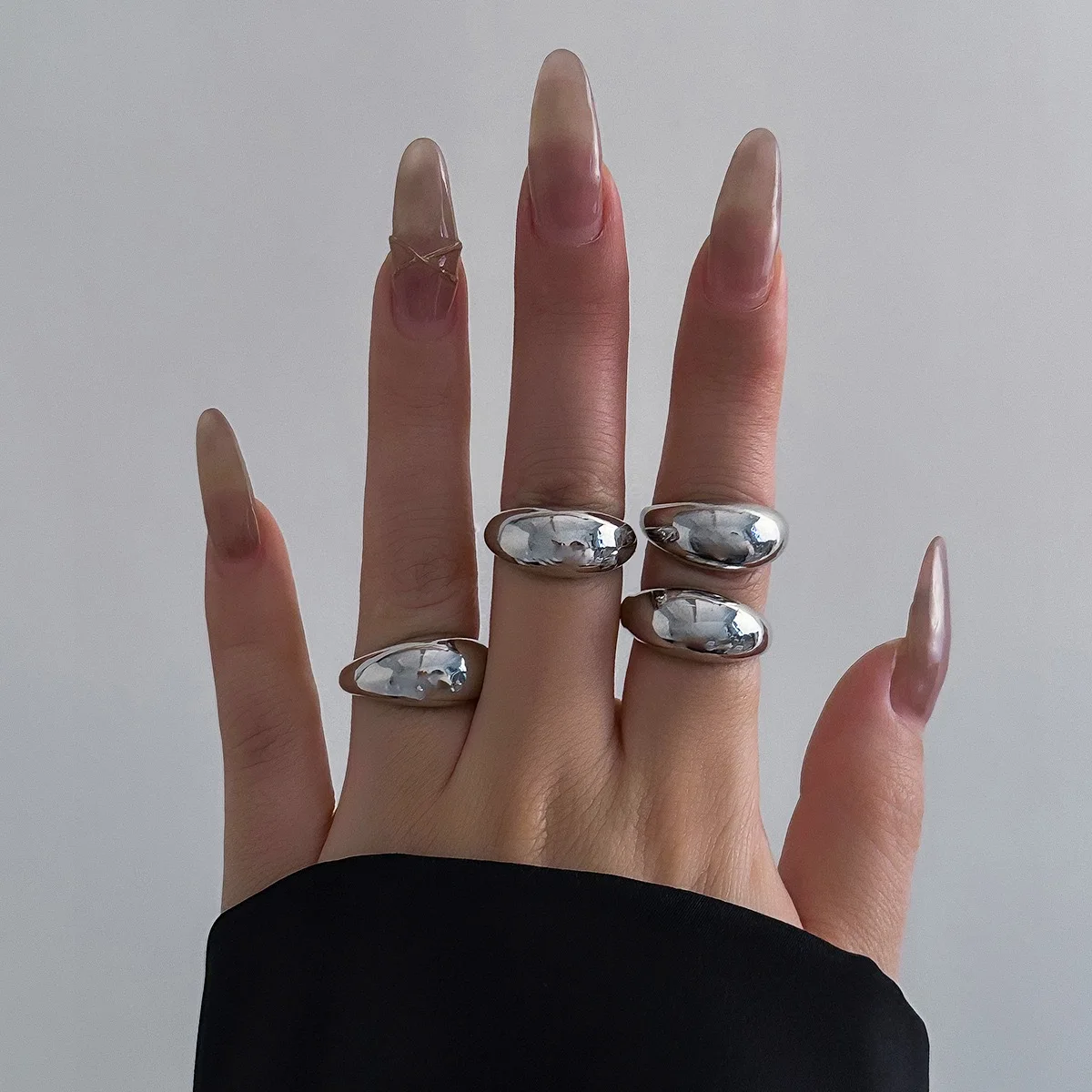 - Each ring features a glossy, elongated water droplet shape, adding a modern, artistic touch suitable for casual or party wear.
