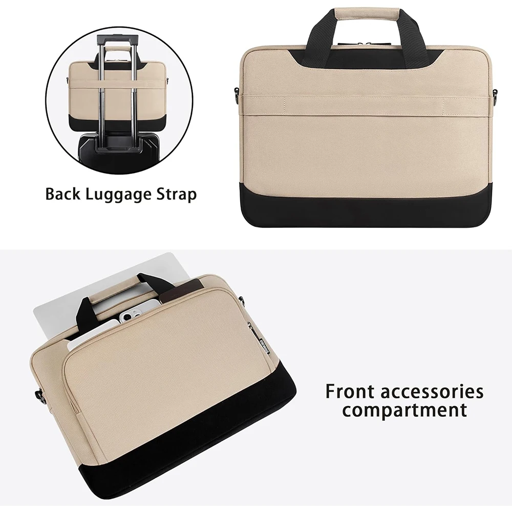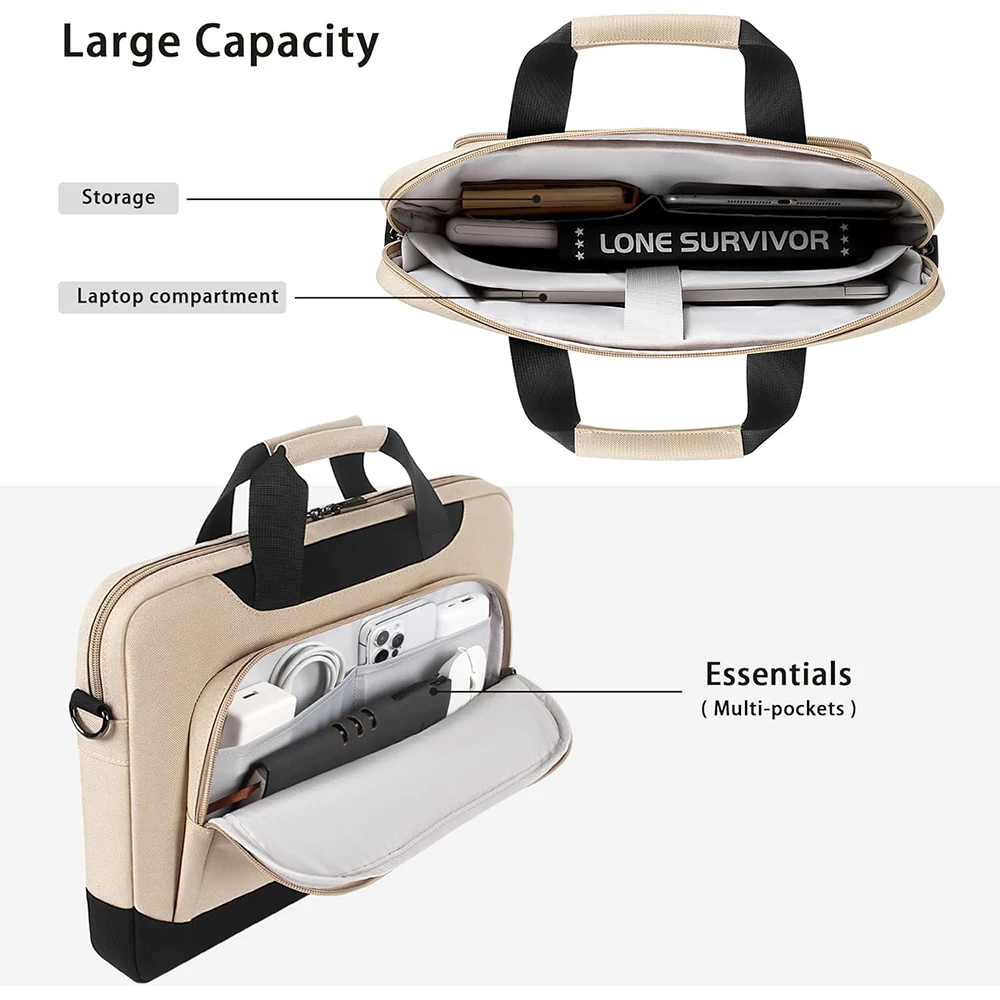 This water-resistant laptop sleeve is designed to safeguard your valuable devices while adding style to your daily carry. With its high-capacity design, it accommodates 14″ to 17″ laptops effortlessly. The sleek exterior is constructed from durable materials, including PU and canvas, ensuring both splendor and protection. Inside, you'll find soft padding and elastic straps that keep your laptop secure. Multiple storage pockets make it easy to organize your electronic accessories and everyday essentials. The adjustable shoulder strap and comfortable handle offer versatile carrying options, making it perfect for business, travel, or daily use. Imagine taking it on your next adventure, secure in the knowledge that your laptop is well-protected.
