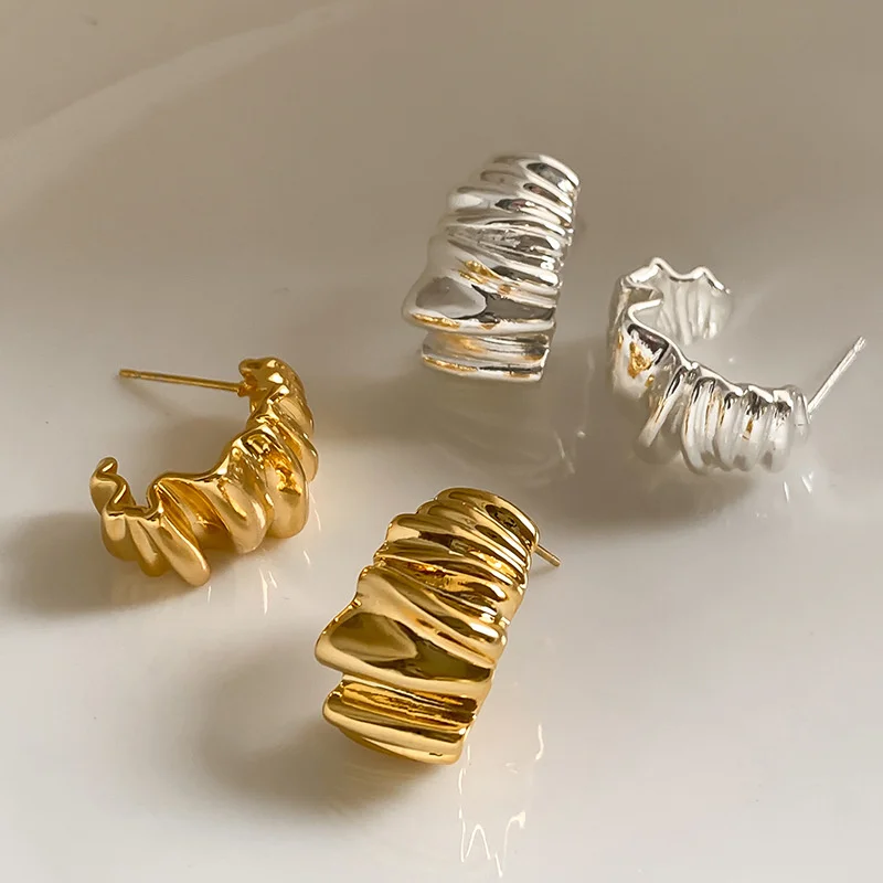 Imagine elevating your style with these stunning water ripple stud earrings crafted from zinc alloy. Their irregular, geometric shape features flowing, organic lines that evoke movement and energy. The glossy, high-shine finish creates a mirror-like surface that captures light beautifully, making each pair a true statement piece. Perfect for adding a bold touch to everyday outfits or for special occasions like parties and holidays, these earrings reflect a punk-inspired aesthetic with smooth, rounded edges and a dynamic, three-dimensional form. Available in three versatile metal tones — gold, silver, and a sleek finish — they effortlessly complement any look. Bring a modern, edgy vibe to your jewelry collection today and enjoy wearing these eye-catching accessories with confidence.