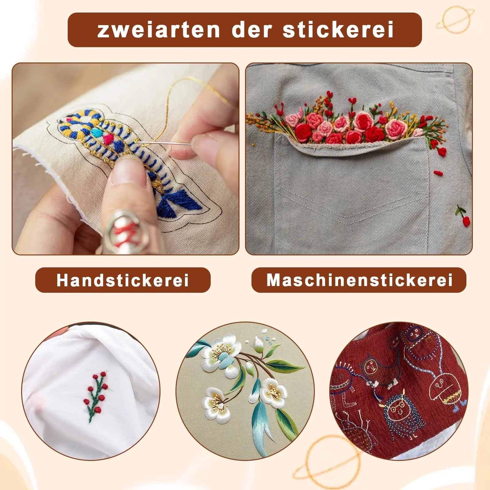 - Compatible with many embroidery and sewing machines and manual techniques. Perfect for use on fabric surfaces to create detailed, professional-looking embroidery or decorative patches.