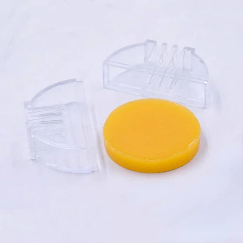 The Water-Soluble Thread Wax is your ultimate companion for hand sewing, offering a practical solution for lubrication and strength enhancement of thread sutures. Each circular container, measuring 4.3 cm in diameter, is crafted from transparent plastic, clearly showcasing the smooth, glossy yellow beeswax within. The wax not only prevents loosening but also makes sewing more efficient. Designed with vertical grooves for a better grip, each container features an easy-access opening for straightforward application onto your sewing thread. This product is perfect for anyone passionate about DIY crafting, leatherwork, or embroidery.