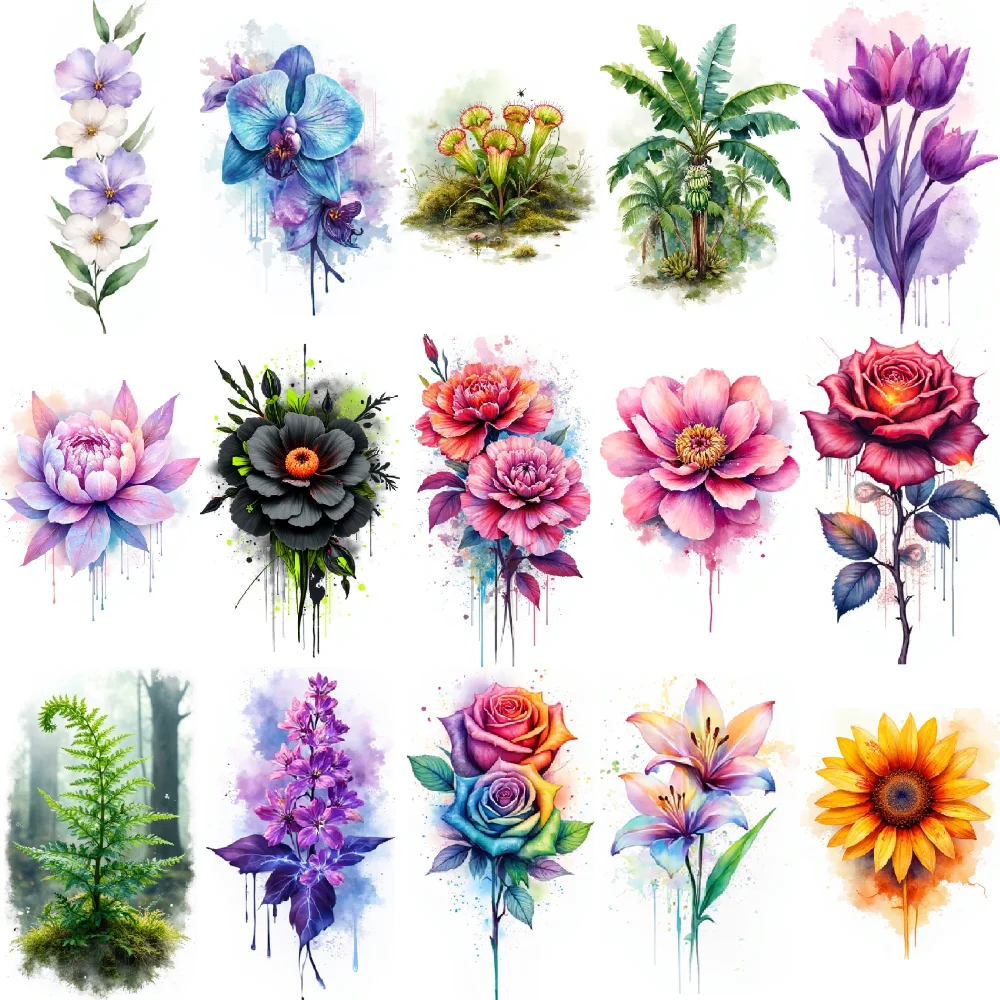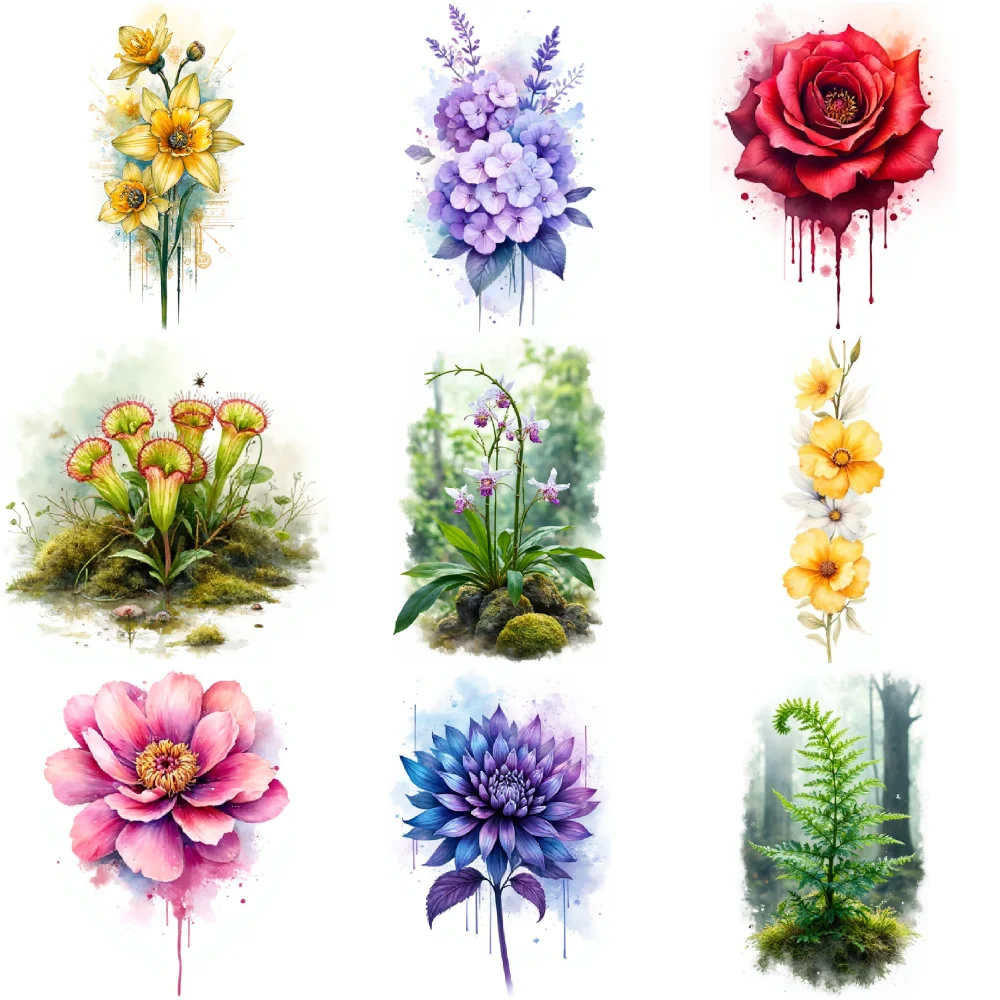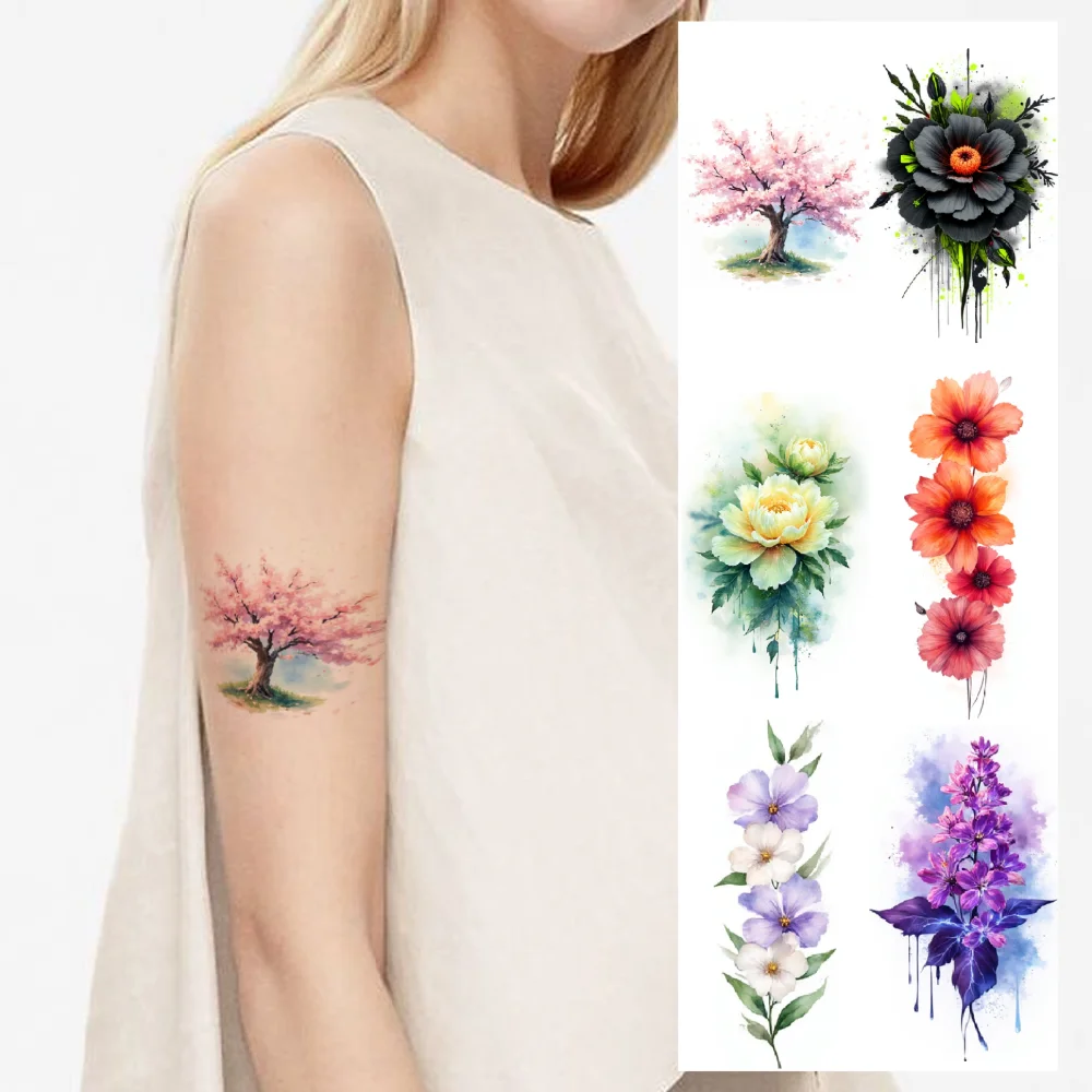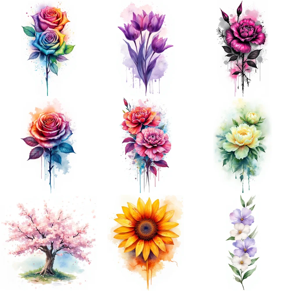 Enhance your look with this set of 9 waterproof watercolor floral tattoo stickers, each measuring approximately 9 x 6 cm. Designed for arms, body, and legs, these vibrant 3D body art tattoos last 3 to 7 days and are perfect for all seasons and occasions like parties, birthdays, and holidays. Easy to apply in just 30 seconds with a wet sponge or cloth, they can be removed effortlessly with alcohol or BB oil. Suitable for ages 14 and older, these tattoos contain no high-concern chemicals, offering a safe and stylish way to express your artistic side during special events or everyday moments.