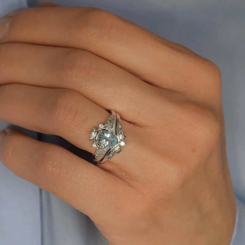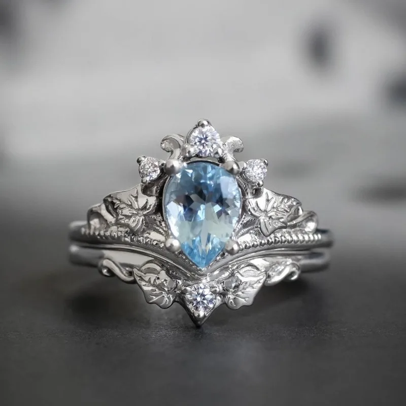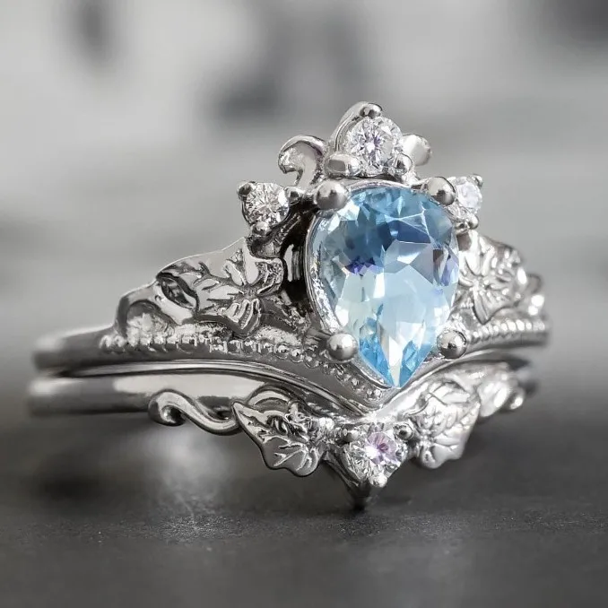 Imagine elevating your look effortlessly with this stunning set of rings, perfect for parties and special gatherings. Crafted from high-quality zinc alloy, these rings feature a trendy geometric waterdrop floral motif, beautifully inlaid with white and blue zircon stones that sparkle with every movement. Available in sizes 6 through 10, they seamlessly fit different finger sizes, making them versatile and easy to wear. The intricate engraved floral and leaf patterns add a touch of elegance and nature-inspired detail, demonstrating an artistic flair. Whether you’re attending a wedding, celebration, or simply want to enhance your daily style, this jewelry set provides a luxurious yet fashionable touch, radiating confidence and style in every occasion.