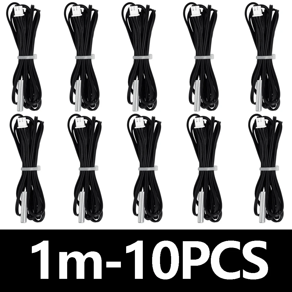 This waterproof NTC thermistor temperature sensor offers flexible lengths of 0.5m, 1m, 2m, or 3m, with quantities available in packs of 1, 5, or 10 pieces. Featuring a resistance of 10K ohms with 1% accuracy and a Beta value of 3950, it operates within a temperature range of -40°C to +85°C. The sensor’s slender metallic probe is connected to durable, flexible black waterproof cables with white connectors, ensuring reliable performance in diverse environments. Designed for electronic modules and DIY projects, it is compatible with STM systems and suitable for precise temperature measurement and monitoring applications.