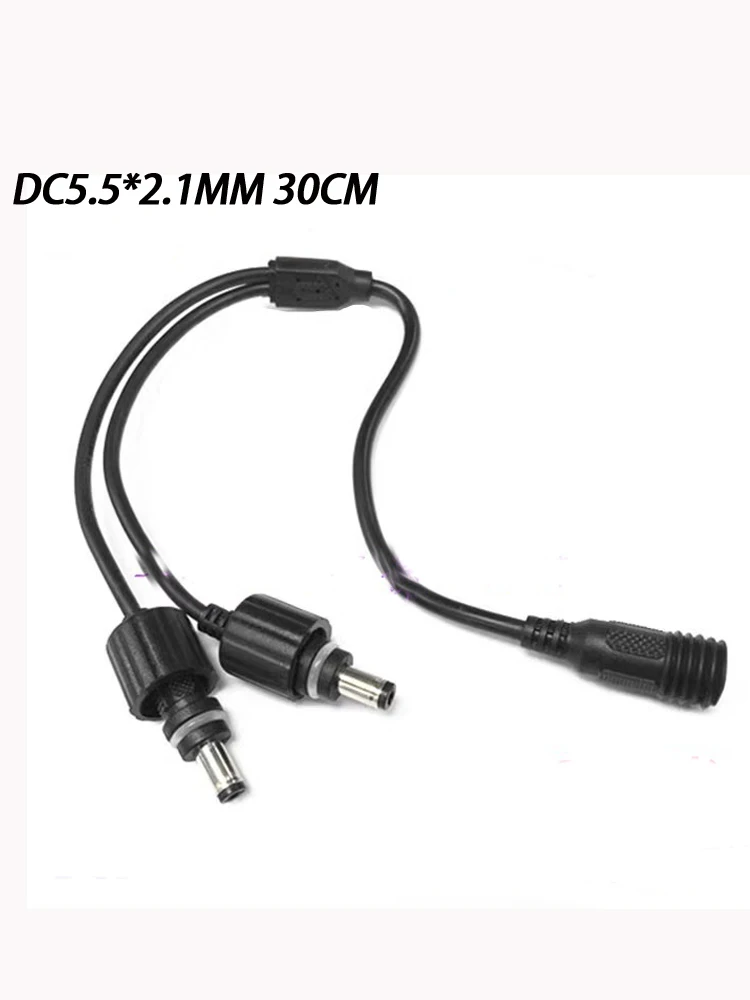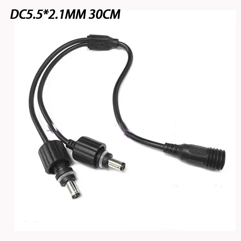 Experience reliable power connections with this this waterproof 12V power splitter cable, designed specifically for outdoor surveillance and electronic setups. Crafted entirely from high-quality copper, it guarantees excellent electrical conductivity and durability. The sleek black design features a smooth, flexible cable length of 30cm, making installation straightforward and tidy. The main female DC connector, with a 5.5mm outer diameter and 2.1mm inner diameter, ensures a snug, waterproof fit. Branching into two male connectors, each with metallic tips housed in black ribbed sleeves, it provides a robust and waterproof connection ideal for outdoor use. Whether you're powering security cameras or other outdoor electronics, this cable promises a clean, secure, and high-performance connection.