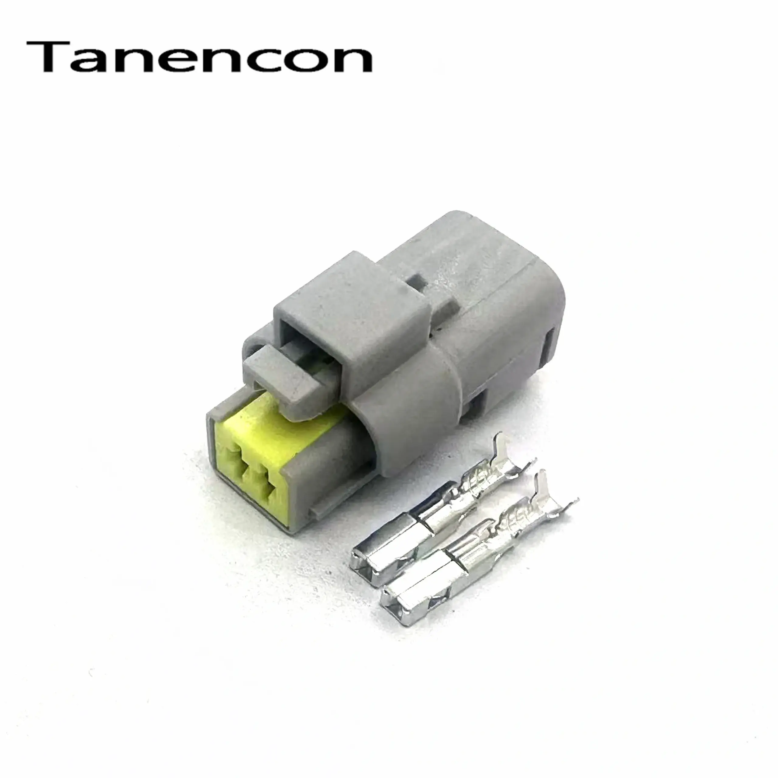 Step into confidence with this rugged, grey automotive waterproof connector from JYCLC, meticulously designed for long-lasting performance. Its sleek, rectangular housing features a modern, streamlined look with a durable plastic body that resists water and corrosion. The vibrant yellow-green locking clip ensures secure attachment and easy locking, providing peace of mind during automotive repairs or upgrades. Equipped with precisely bent, shiny metal terminal pins and compatible with 18 AWG wires, this connector ensures excellent electrical contact and reliable connection. Available in sets of 1, 5, 10, or 20 units, it’s perfect for replacing damaged connectors or expanding your vehicle's wiring system. Trust in its quality to keep your vehicle's electrical system performing flawlessly even in challenging conditions.