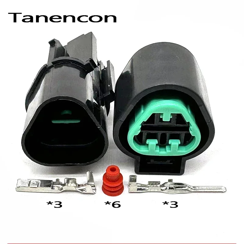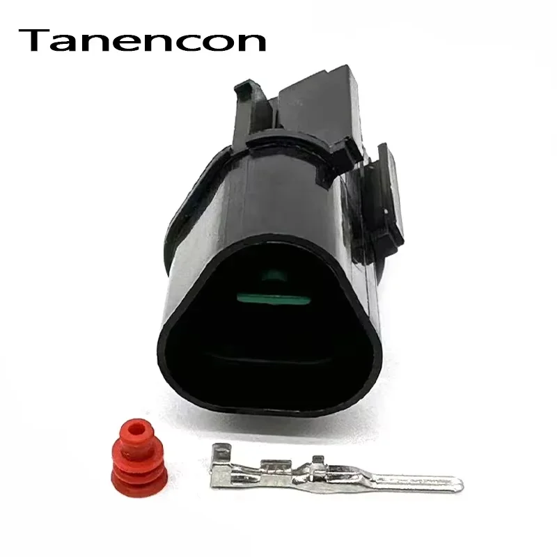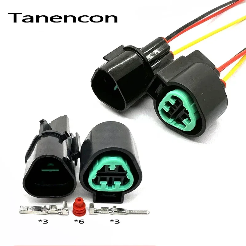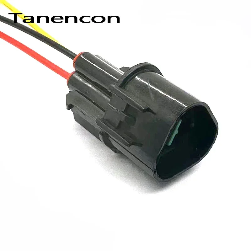 Imagine upgrading your vehicle with this highly durable, waterproof automotive connector set, designed to ensure reliable electrical connections in challenging environments. Crafted from tough black plastic, each connector is engineered for longevity and resilience, resisting water, dust, and environmental wear. The male connector features a sleek, cylindrical shape with a smooth, slightly glossy surface for easy handling. The female connector has a rounded, slightly rectangular design with an internal glowing green socket for secure locking, ensuring a solid connection. With color-coded wires—red and black—these connectors streamline installation and troubleshooting. Perfect for headlight sensors or other automotive applications, this set offers peace of mind with its high-performance design, providing a seamless link between your vehicle’s electrical system and critical components.