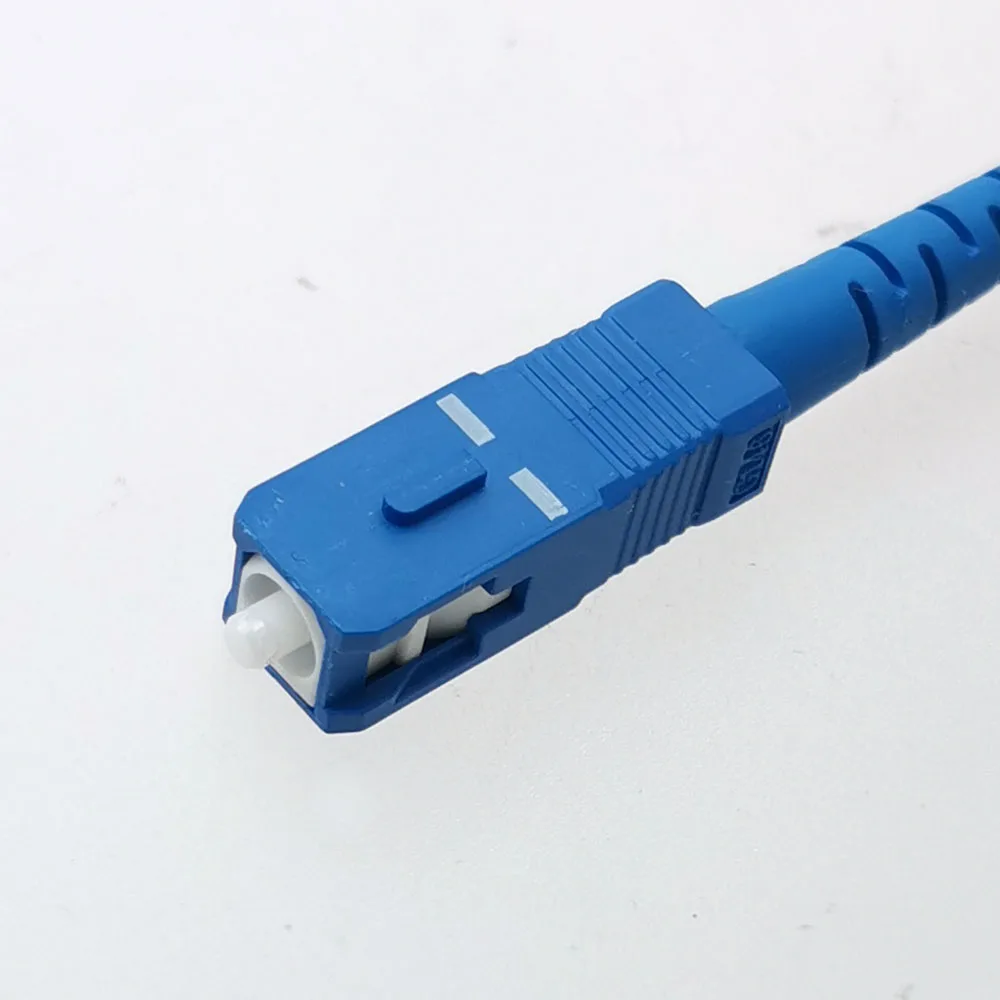 - The cable includes vibrant blue SC connectors with white ceramic ferrules, providing precise single-mode fiber connections optimized for high-performance, stability, and quick deployment in outdoor environments.