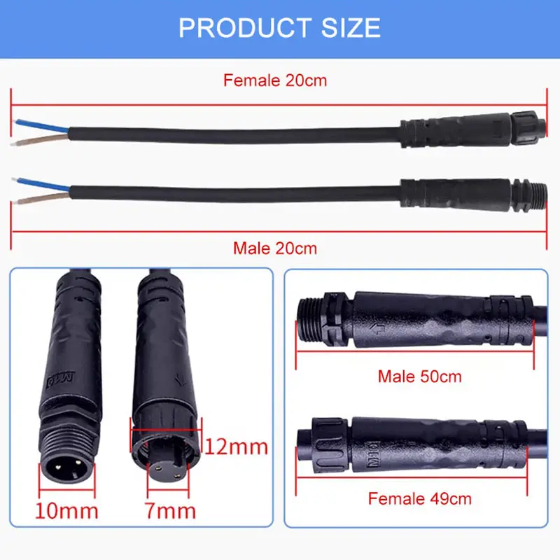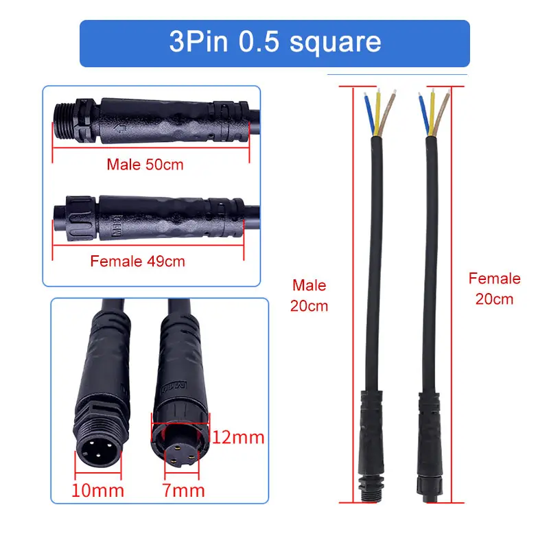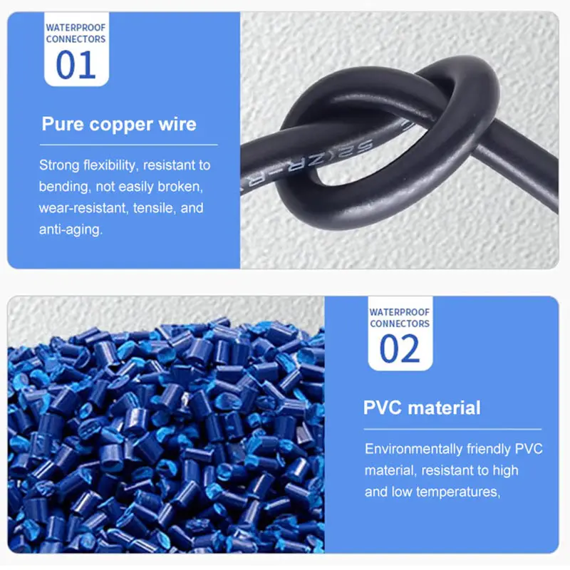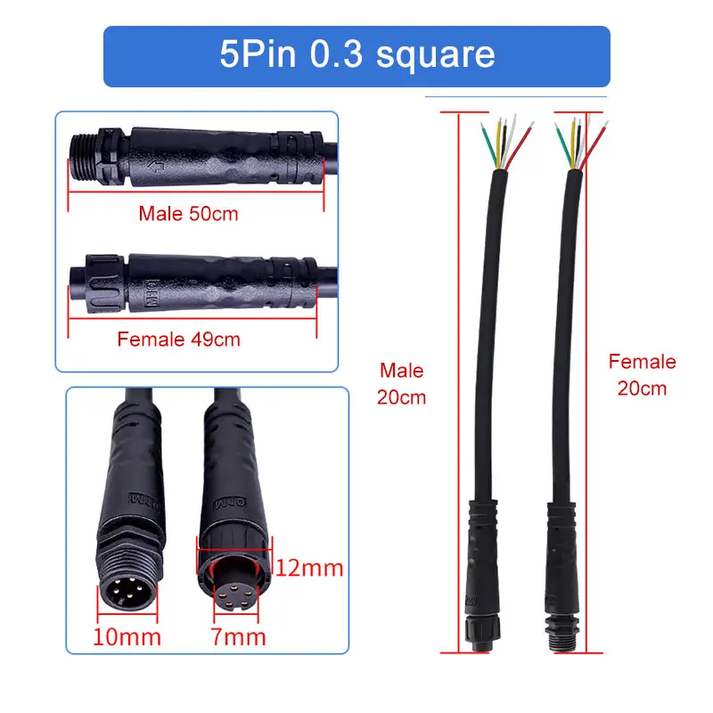 This high-quality waterproof aviation connector by DiveDeer boasts a modern, cylindrical design with a matte black PVC outer casing. The connectors are designed with practicality and durability in mind, featuring a smooth, minimalistic exterior. Available in 2-pin, 3-pin, 4-pin, and 5-pin configurations, they accommodate wire cross-sections of 0.3, 0.5, and 0.75 square millimeters, making them versatile for various applications. They are constructed with environmentally friendly PVC and oxygen-free copper wires, ensuring excellent conductivity and environmental safety. The connectors are equipped with gold-plated pins for corrosion resistance and reliable electrical contact, supported by textured, external threads for secure fastening. Their sleek, professional aesthetic combines functionality with subtle industrial appeal suitable for demanding environments.