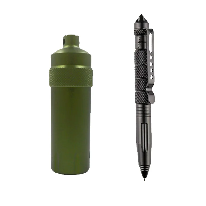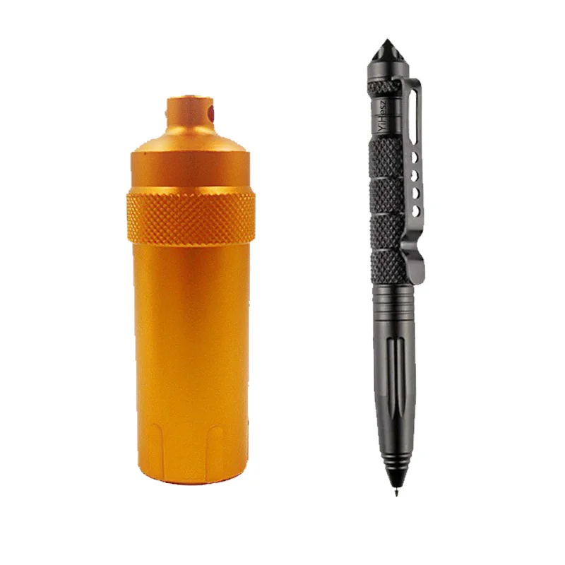 This durable waterproof aluminum alloy case combines rugged functionality with sleek design, available in black, green, and orange, with or without a tactical pen. Its lightweight, corrosion-resistant construction ensures long-lasting use while providing an airtight, waterproof seal to protect daily essentials such as pills, USB drives, matches, batteries, flint, powder, earplugs, and outdoor condiments. Designed for outdoor adventures like hiking, fishing, camping, and hunting, as well as for emergency preparedness, this compact case offers reliable, corrosion-resistant storage that easily fits into your gear. Its textured grip and practical size make it your ideal companion for safeguarding your essentials in any environment.