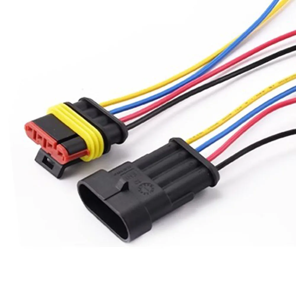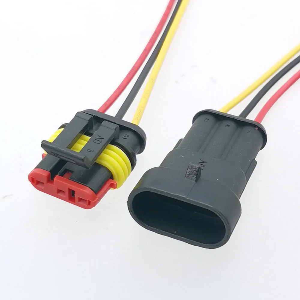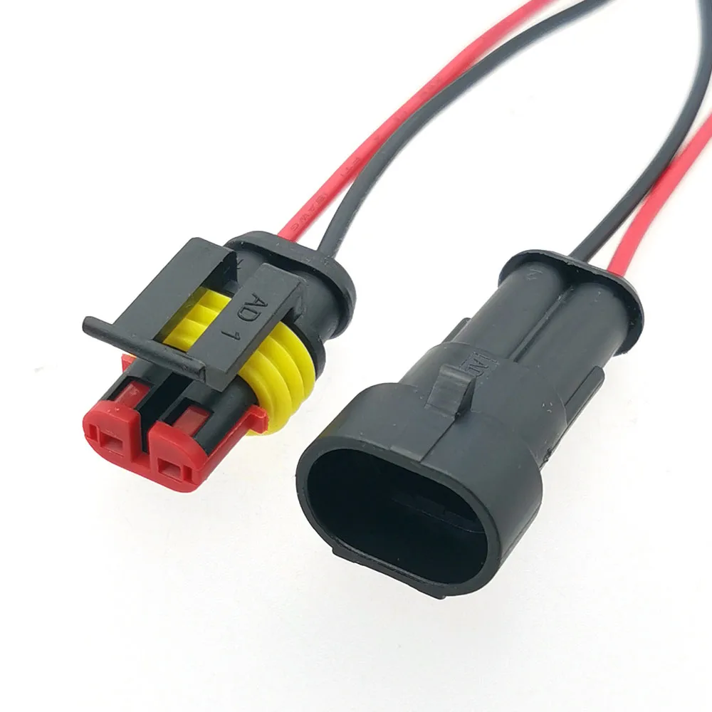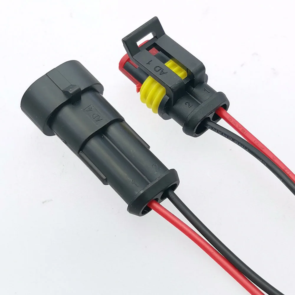 Experience reliable connectivity with this waterproof electrical auto connector set, featuring male and female plugs in 2P, 3P, 4P, 5P, and 6P configurations, designed for secure automotive and motorcycle applications. Built with durable, insulating black cylindrical housings boasting a smooth matte finish and subtle ridges for grip, these connectors include brightly colored wires—red, yellow, black, blue, and green—that enhance visual clarity and ease of installation. Rated for voltages up to 30V, they are ideal for demanding environments, providing waterproof protection, secure locking mechanisms, and precise pin arrangements to ensure safe, stable, and durable electrical connections in your vehicles.