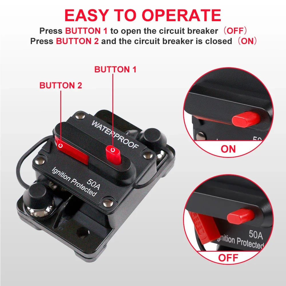 - This circuit breaker operates within 12V-24V DC systems, perfect for cars, boats, and RV setups, providing adjustable protection currents from 30A up to 300A for versatile use.