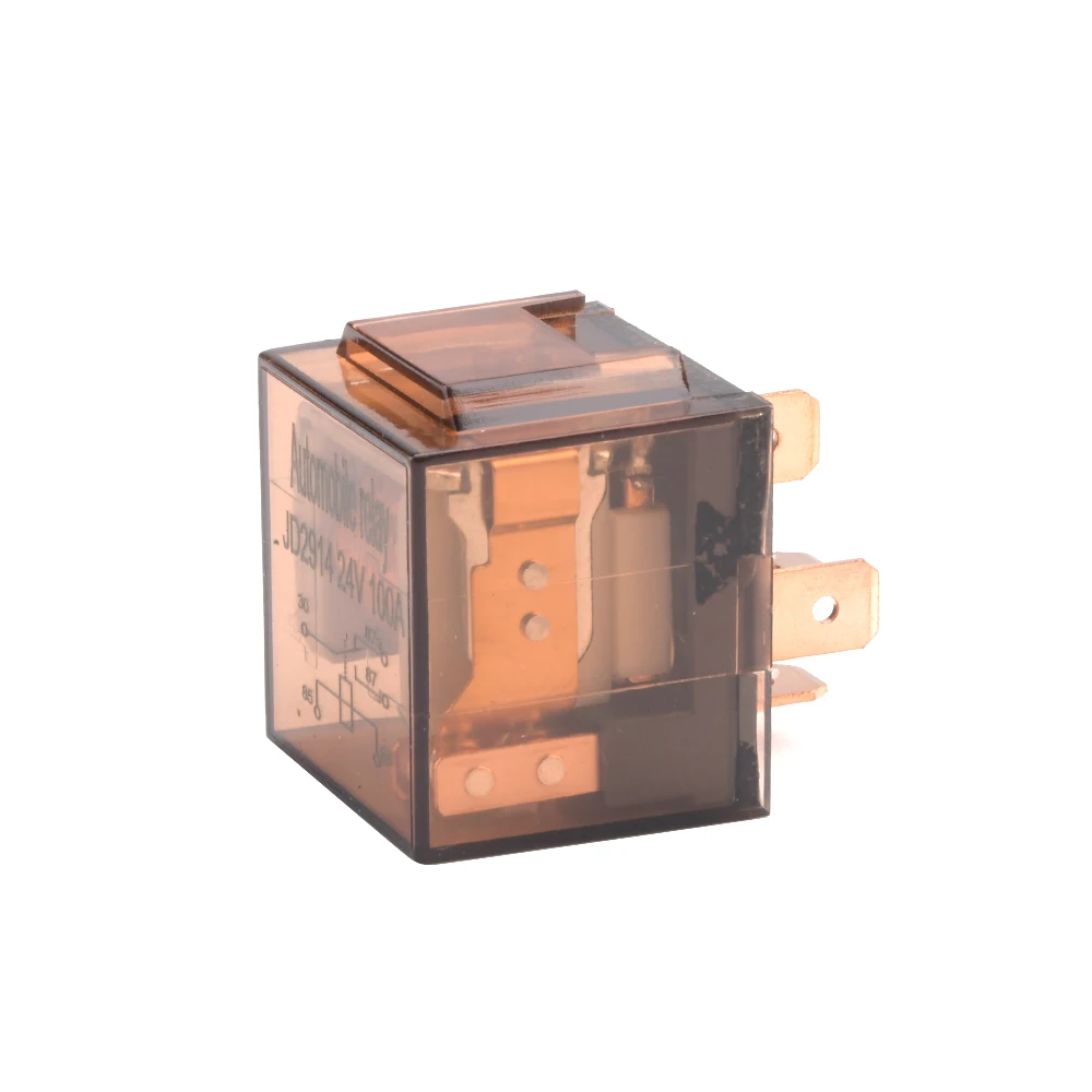 This durable 24V waterproof automotive relay features a 5-pin configuration and supports currents of 80A or 100A, ensuring reliable operation in rugged environments. Encased in a sturdy amber-colored plastic housing, it offers excellent water resistance and durability for automotive applications. The relay’s five copper-colored terminals extend from one side in a staggered arrangement, facilitating secure wiring connections. Designed for longevity and high performance, it is ideal for vehicle electrical systems requiring dependable switching capabilities in challenging conditions. Perfect for replacing or upgrading existing relays, this compact and resilient component guarantees seamless integration and reliable performance.