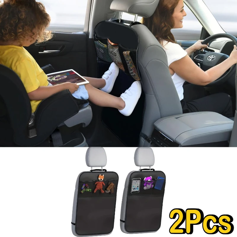 Experience the ultimate protection and organization with this set of waterproof back seat covers. Designed with sleek black, solid color fabric, these covers add a modern, minimalist touch to your car's interior while shielding your seats from dirt, scratches, and kicks. Each cover measures 44×60 cm, snugly fitting onto the back of car, truck, van, or SUV seats. The double-layered fabric ensures durability, making maintenance effortless—simply wipe clean or wash when needed. The anti-slip buckle straps at both the top and bottom secure the covers firmly in place, preventing slipping during travel. The three mesh pockets at the top provide convenient space for toys, small items, or essentials, helping keep your backseat organized and your kids entertained. Enjoy peace of mind on every journey knowing your seats stay protected and tidy.