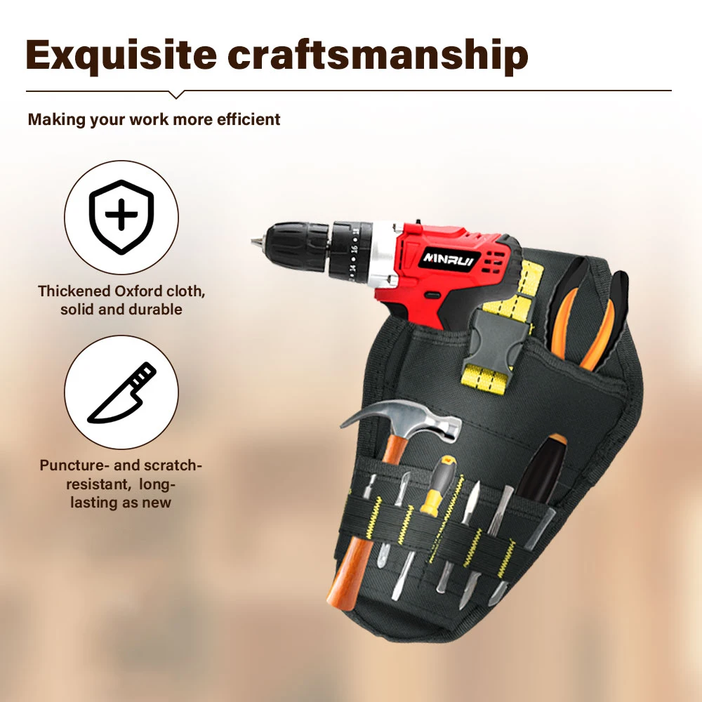 Experience unmatched organization and protection with this versatile waterproof drill cover and tool bag in sleek black. Crafted from durable Oxford cloth, it offers excellent water resistance for demanding work environments. Its compact, waist-mounted design ensures your power tools and hand tools—such as cordless drills, wrenches, hammers, and screwdrivers—are kept secure, accessible, and well-organized. Multiple front pockets and elastic loops allow you to arrange your tools efficiently, saving time on-site. Whether you're a professional tradesperson or a dedicated DIY enthusiast, this bag provides a practical solution for your tools, ensuring they stay protected and ready for use at all times. Simplify your work process and enjoy the confidence of reliable gear.