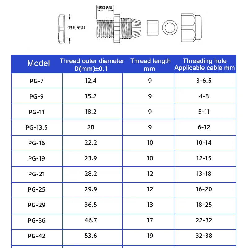 - Available in multiple sizes (PG7, PG9, PG11, PG13.5, PG16, PG19, PG21, PG25, PG29, PG36, PG42, PG48, PG63), catering to diverse electrical and industrial needs.