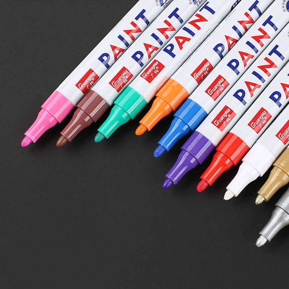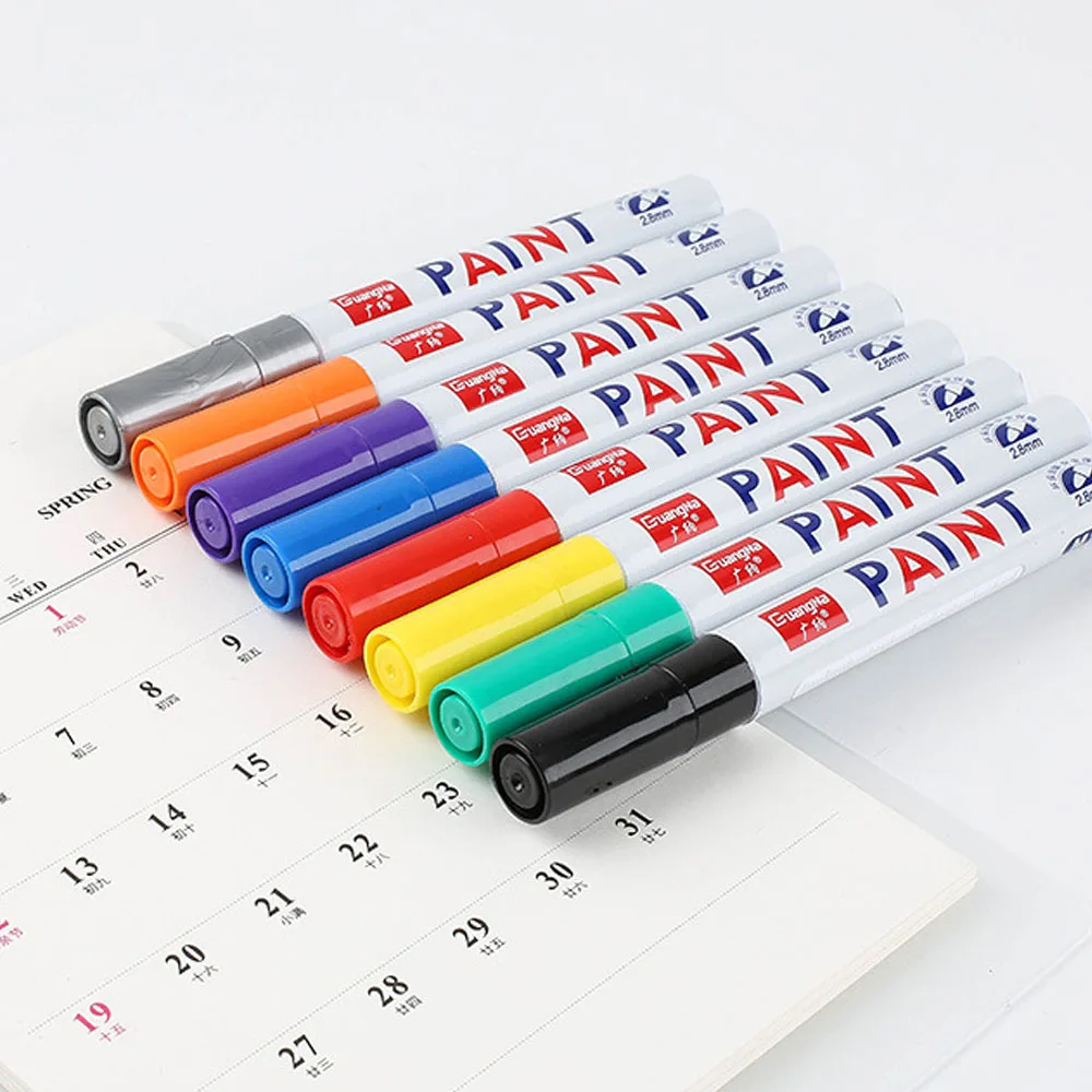 Imagine effortlessly customizing your vehicle with this versatile waterproof car paint pen. Designed specifically for automotive enthusiasts like you, it offers permanent, waterproof markings on metal and rubber surfaces. Whether you're marking your tires, rims, or other metal parts, this pen ensures clear, durable results. Its vibrant color variety allows you to create precise symbols or custom designs with ease. The sleek, pen-style design provides a comfortable grip, making lengthy projects manageable. Suitable for tire tread and wheel marking, its oily paint delivers excellent adhesion, resistance to water, and long-lasting performance. This product elevates your vehicle's look while providing a reliable, professional touch to your automotive customization.