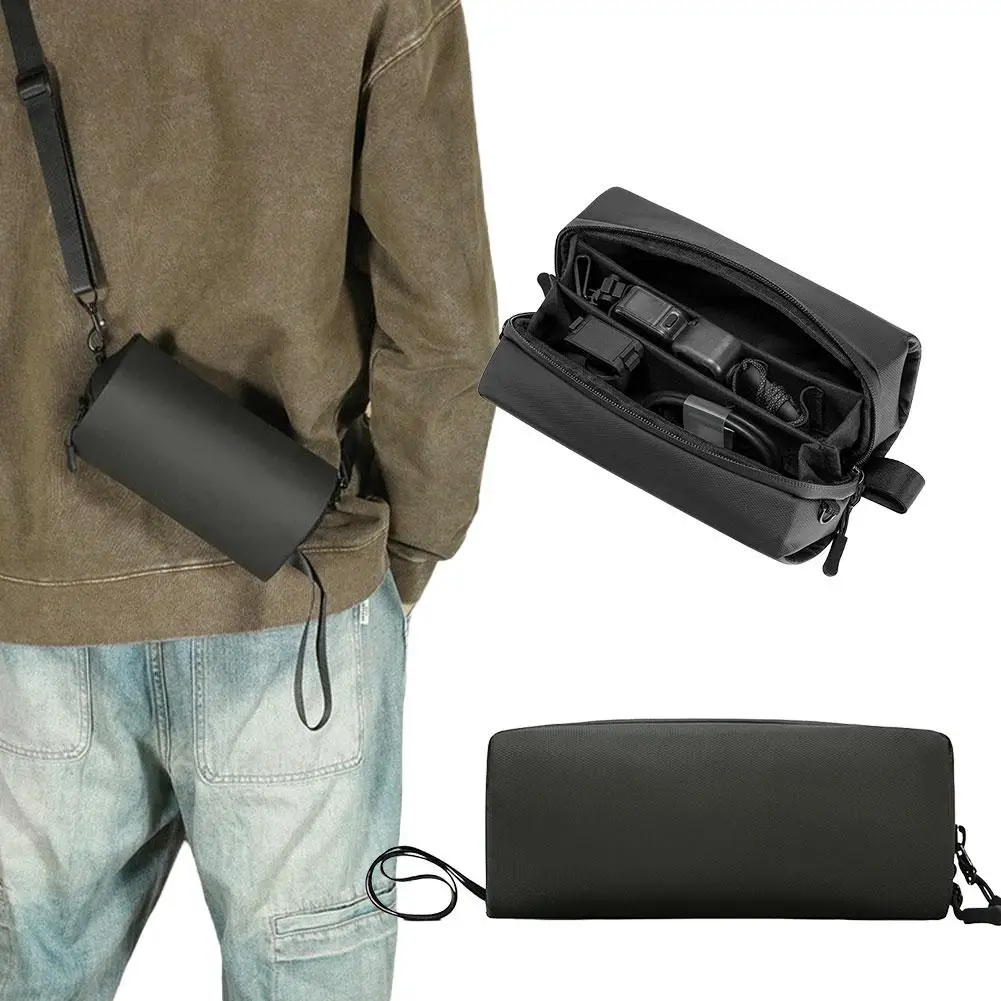 Protect your DJI Osmo Nano with this durable, water-resistant carrying bag made from high-density polyester fiber. Measuring 20cm x 10cm x 9cm and weighing only 210 grams, it features internal adjustable dividers and elastic straps to securely organize your device, batteries, SD cards, and cables. Designed for 360° impact, scratch, bump, and impact resistance, the bag offers comprehensive protection for outdoor photography and travel. Its sleek black exterior, lightweight design, and included shoulder strap make it easy to carry, ensuring your aerial photography gear stays safe and organized wherever your adventures take you.