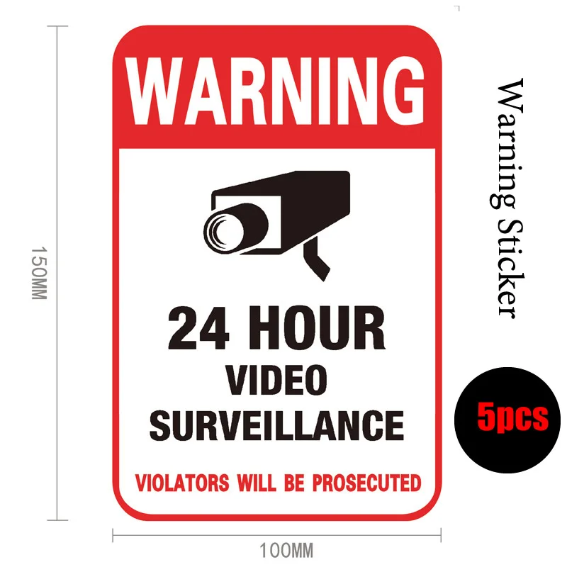 Enhance your security measures with this set of five waterproof CCTV warning stickers, each measuring either 10x10cm or 10x15cm. Crafted from lightweight coated art paper, these vibrant decals feature bold yellow and black or red and white designs that provide clear visual warnings of 24-hour video surveillance. Perfect for outdoor use on smooth surfaces like windows or walls, they are easy to apply and remove without leaving residue. These durable stickers help deter unauthorized access and surveillance tampering, offering an effective first line of defense for your property. Backed by a one-year manufacturer warranty, they are a reliable addition to any security setup.