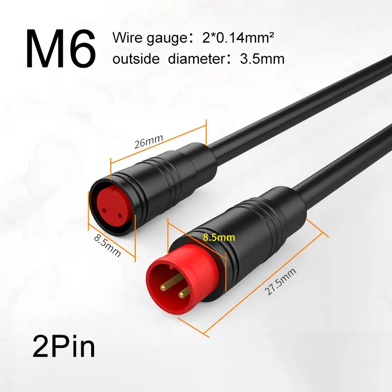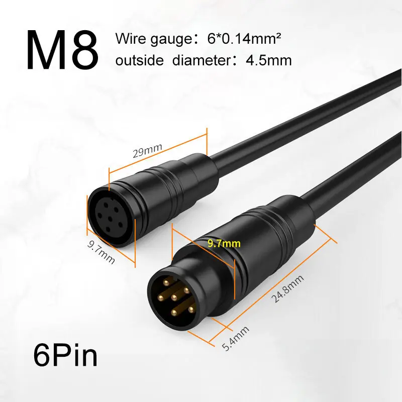 - Offers versatile configurations: M6 and M8 models with 2, 3, 4, 5, or 6 pins, suitable for various wiring needs in solar and home automation systems.
