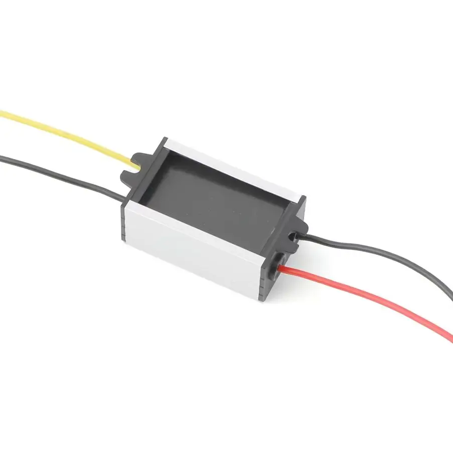 Experience reliable power conversion with this waterproof stabilizer voltage module, designed for durability and versatility. Crafted with high-quality metallic cooling fins and a sleek gray circuit core, it seamlessly combines industrial style with functional efficiency. Its bright silver aluminum heat sinks feature vented fins to effectively dissipate heat, ensuring your setup stays cool even under demanding conditions. The multiline wires—red, black, yellow—highlight the customizable, professional-grade build, perfect for automotive or outdoor applications. With a robust and streamlined design, this module offers peace of mind for critical projects, blending technical precision with rugged durability for long-lasting performance. Visualize your project powered confidently by this sleek, industrial-inspired component, designed to simplify setup and ensure safety in outdoor environments.