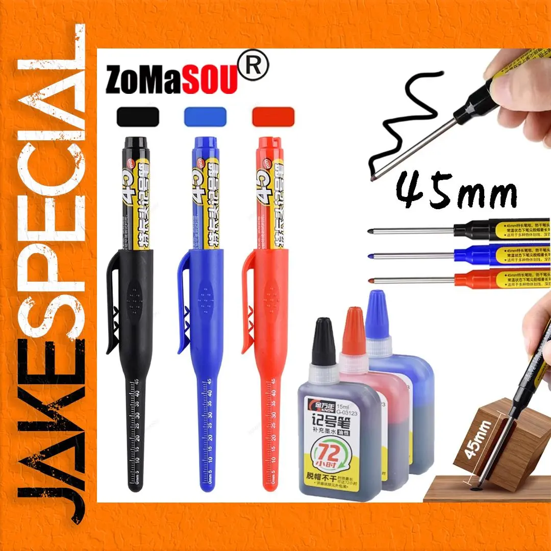 Imagine tackling your next woodworking project with ease, thanks to this 45mm waterproof long head deep hole marker pen. It’s designed to provide clear and vibrant markings on various surfaces, including wood, metal, and glass. The ergonomic grip and sturdy construction ensure comfortable use, while the built-in ruler allows for precise measurements during your tasks. With its refillable design, you won't have to worry about constant replacements. The striking colors—black, red, and blue—provide versatility for all your marking needs, transforming your creative or industrial endeavors into effortless achievements.