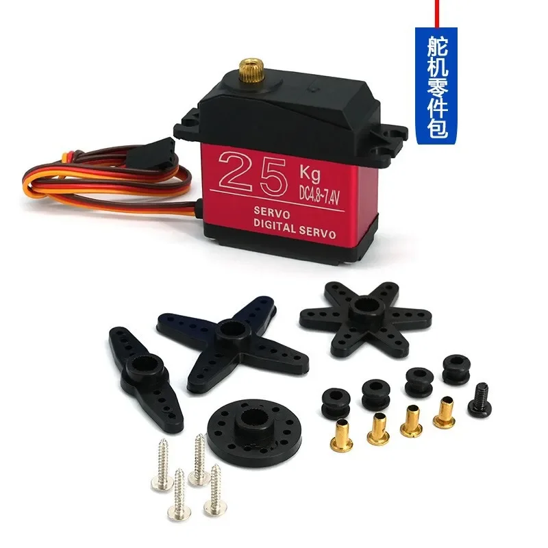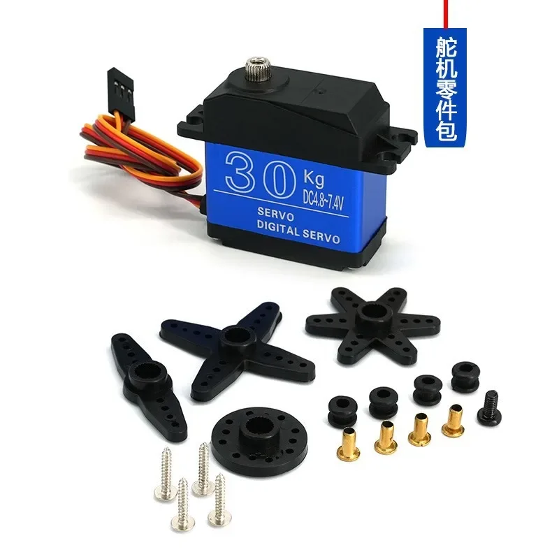 Experience precise control and durability with this waterproof digital servo available in models with torque capacities of 20kg/cm, 25kg/cm, 30kg/cm, 35kg/cm, and 40kg/cm, featuring operation angles of 180° or 270°. Measuring 40mm x 20mm x 46mm and weighing 68 grams, it operates within a voltage range of 3.7 to 7.2V DC, with speeds of 0.15 seconds per 60° at 5V and 0.13 seconds at 6.8V. Constructed with high-strength metal gears, double ball bearings, and a semi-metallic body, it offers superior load capacity, stable performance, and excellent resistance to extreme temperatures. Includes essential accessories for seamless integration into RC cars, boats, robots, and other models.