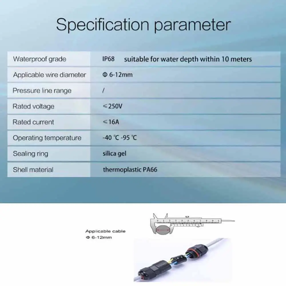 Keys features of this waterproof cable connector from DIVEDEER