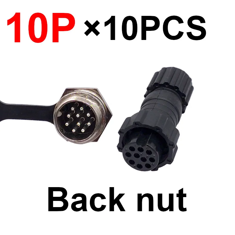 Experience reliable and secure electrical connections with this set of waterproof connectors, perfect for outdoor and industrial applications. Crafted with a robust black plastic body and textured grip surfaces, these connectors ensure easy handling and added durability. The metallic-threaded coupling rings provide a secure fit, while the circular pin holes come in configurations from 2 to 10 pins, accommodating diverse wiring requirements. With an IP54 rating, they resist dust and water splashes, offering peace of mind during heavy-duty use. Designed to operate at 48V and certified by CE, this versatile set enhances your project’s safety and performance. Whether for custom wiring, repairs, or installations, these connectors blend practical design with technical excellence to meet your needs reliably.