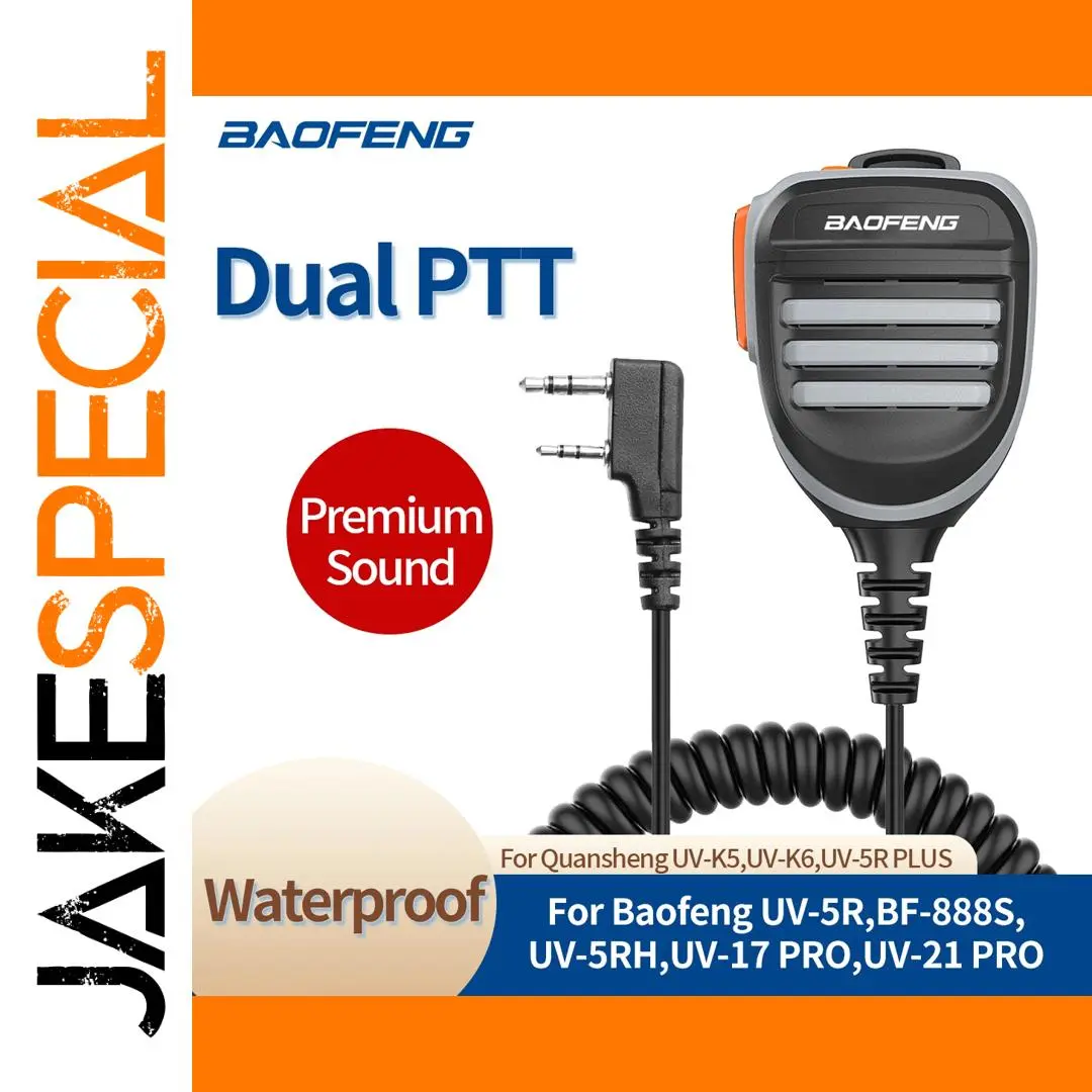 Upgrade your communication setup with this durable, waterproof handheld microphone compatible with a wide range of two-way radios, including BaoFeng (UV-5R, UV-82, BF-888S, UV-25, UV5RA, F8, DM-5R Plus, BF-777S, UV-X9 PLUS, BF-F8HP, DM-860, DM-1701, DM-1702) and Quansheng models (UV-K5, UV-K6, UV-5R PLUS, UV-K5 PLUS, TG-UV2PLUS). Featuring an 11mm two-pin connector, 3.5mm earphone, and 2.5mm microphone jacks, it includes a push-to-talk button, clip for easy bodywear attachment, and an anti-noise design for clear, interference-free communication. Available in black, green, orange, red, and a special “5R MIC” variant, this compact, rugged mic is ideal for outdoor, tactical, and professional use.