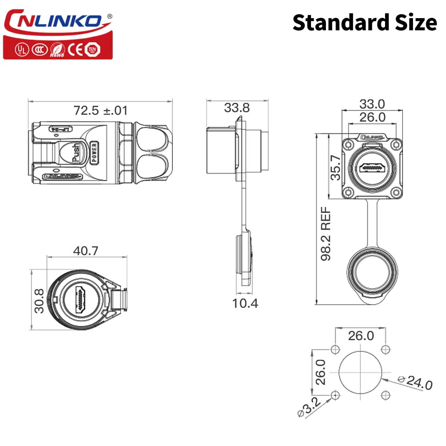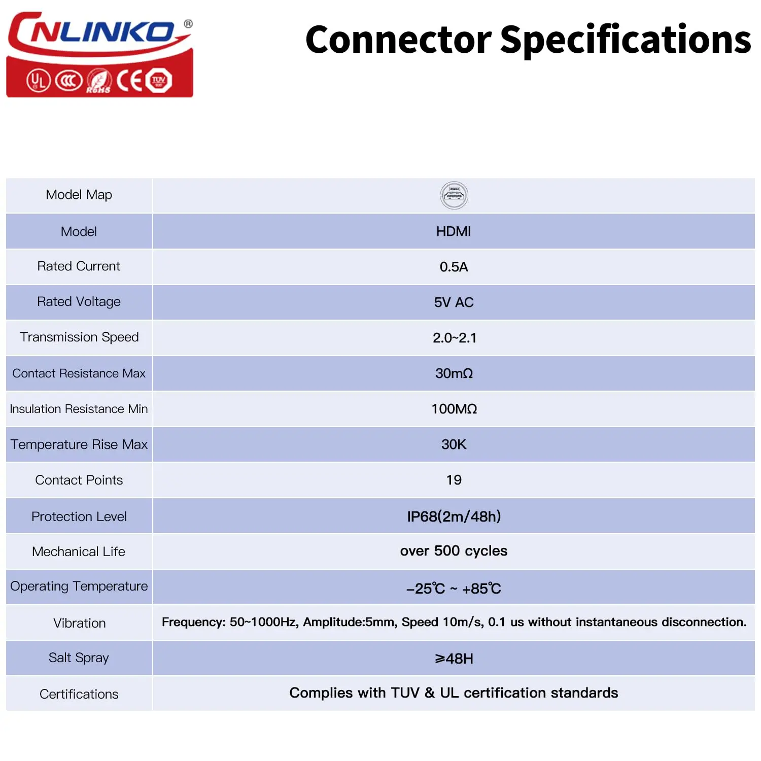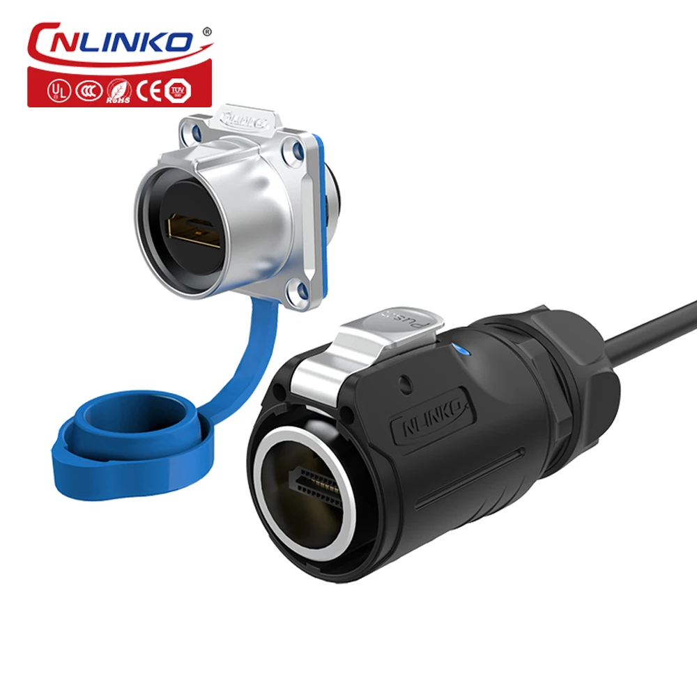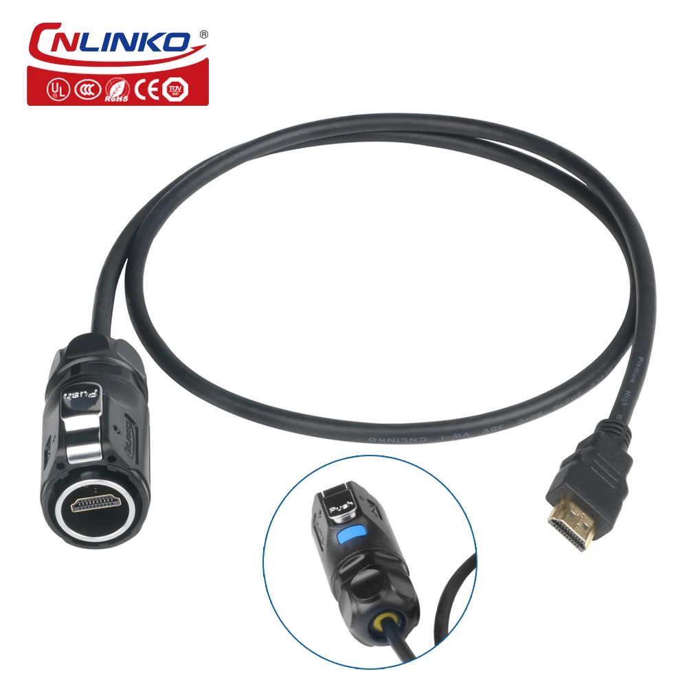 Experience reliable, high-quality video and audio transmission with this waterproof HDMI 2.0 data connector, supporting 4K HD resolution at 3840×2160 pixels for stunning visual clarity. Crafted from durable high-performance engineering plastics and zinc alloy metal hardware, it features an IP68 water resistance rating, making it ideal for outdoor or humid environments. The connector is designed with an easy locking mechanism for secure connections and is compatible with HDMI devices. Available in various cable lengths from 1m to 5m, with options for dual or single plug configurations, it offers exceptional durability with over 500 connection cycles and meets CE, RoHS, UL, and TUV standards for safety and quality.
