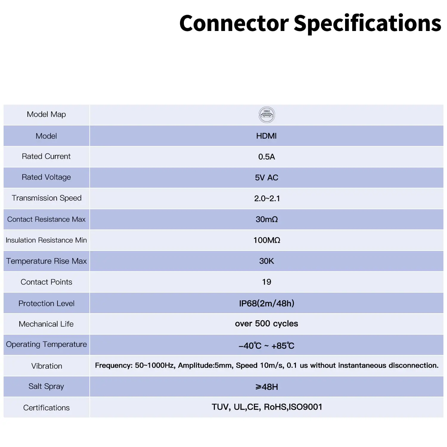 - Rated for 500+ connection cycles, with a rated current of 0.5A and voltage of 5V AC, supporting reliable performance for regular use in diverse settings.