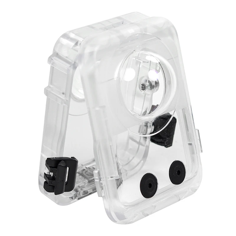 Experience ultimate underwater protection with this high-quality waterproof housing designed specifically for the DJI Osmo 360. Crafted from durable, hardened polycarbonate, it features a sleek, transparent finish with textured surfaces on both the inner and outer layers, providing an elegant look and excellent scratch resistance. The prominent circular lens port, made of clear PC with a 95% light transmission, increases to 97% after AR coating for optimal clarity. Waterproof up to 40 meters, it ensures your camera stays safe during diving or snorkeling adventures. The silicone front buttons are easy to operate underwater, while the magnetic quick-release base offers seamless attachment to various accessories. Designed for durability, functionality, and style, this housing ensures your camera performs excellently beneath the waves.