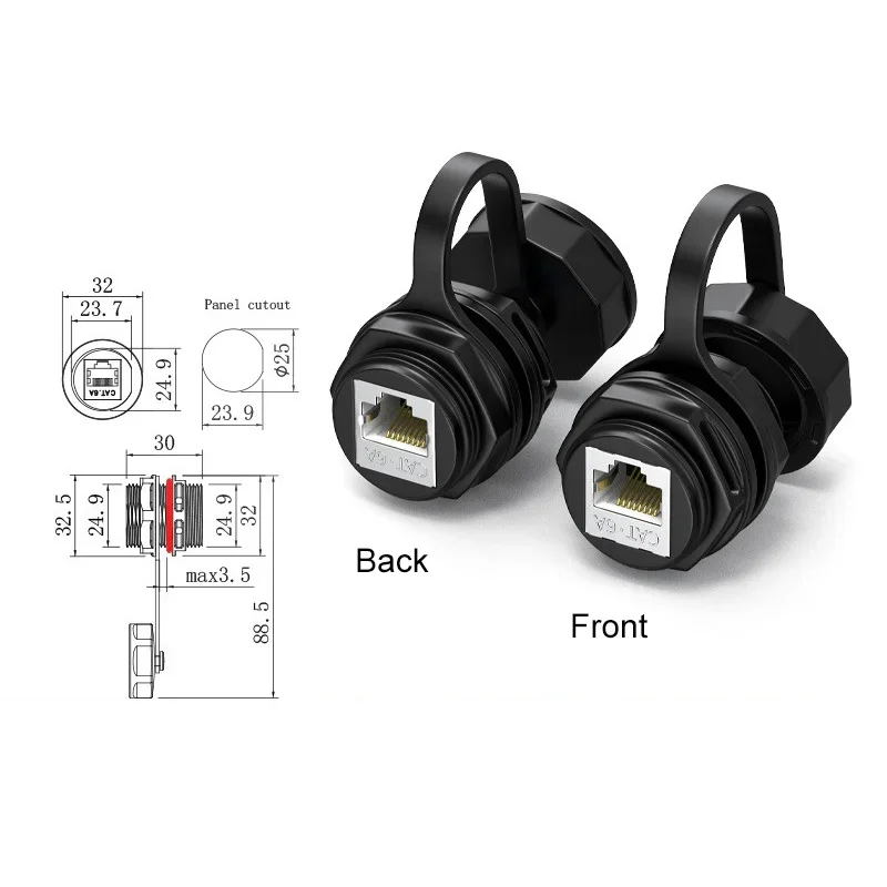 Waterproof Industrial Ethernet RJ45 Connector M21 M25