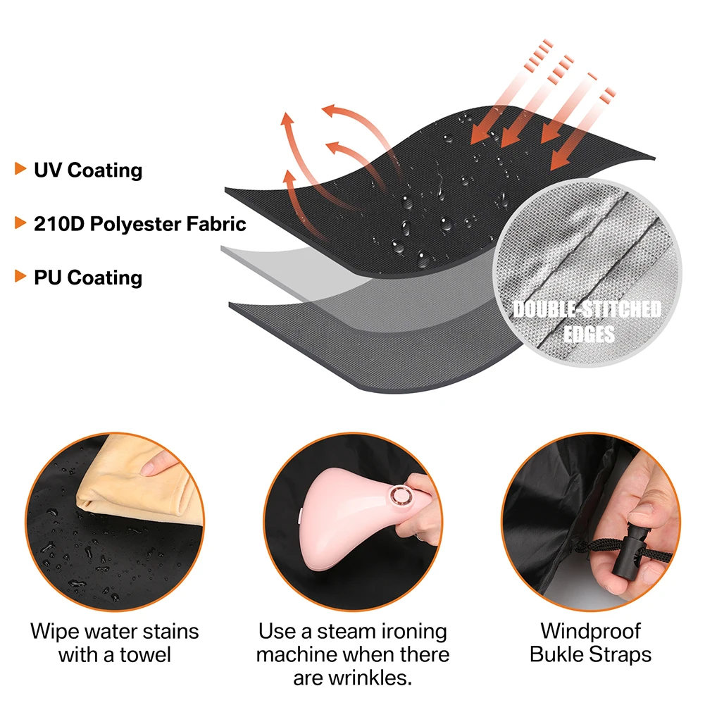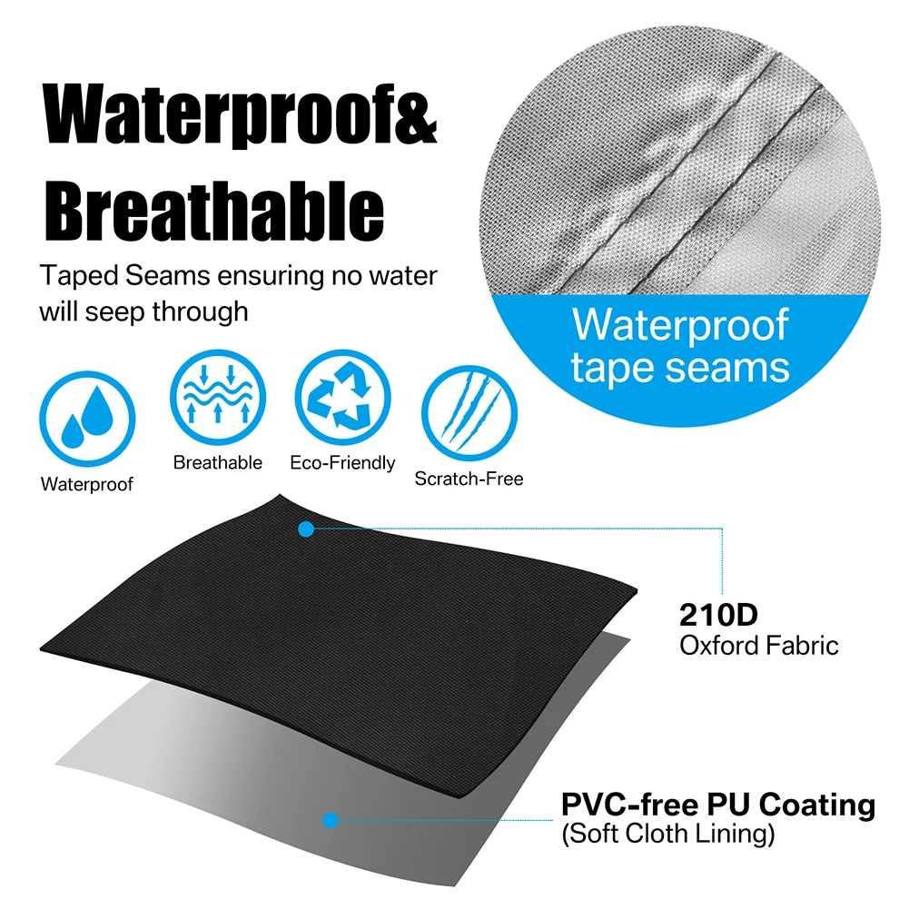 - Made from heavy-duty oxford fabric with UV stabilization and waterproof coating for ultimate outdoor durability and long-term protection.