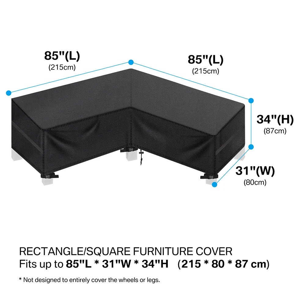 - Designed for a snug, custom fit for most L-shaped sectional lounges, with adjustable straps and drawstring toggles to secure against wind and ensure a tight fit.