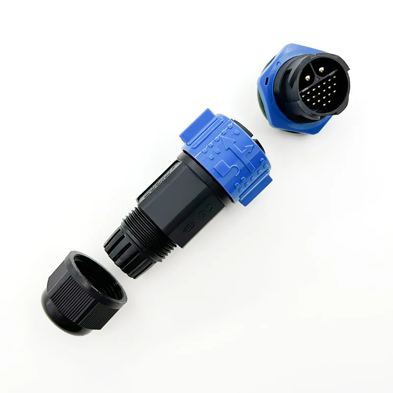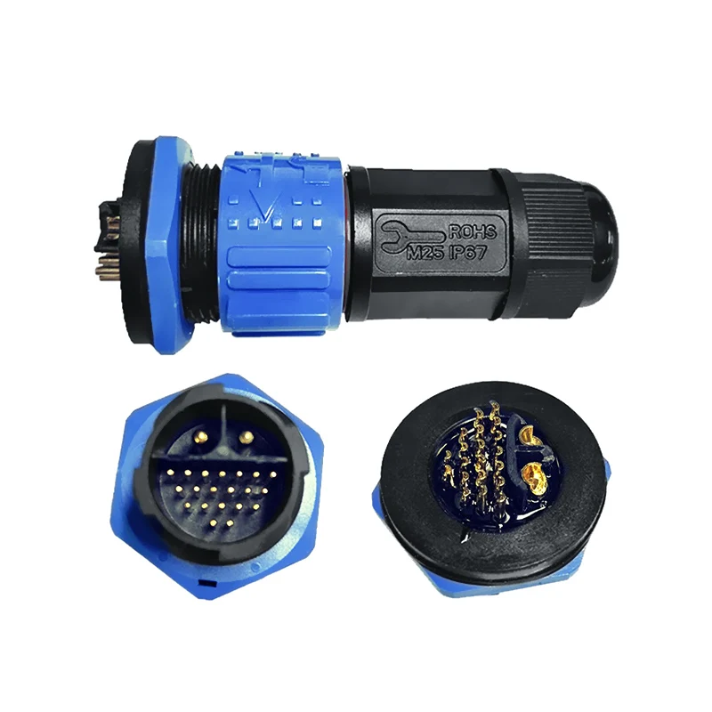- 22-pin male and female joint with precise socket holes, supporting direct insertion and a self-locking mechanism that guarantees a tight, waterproof seal.