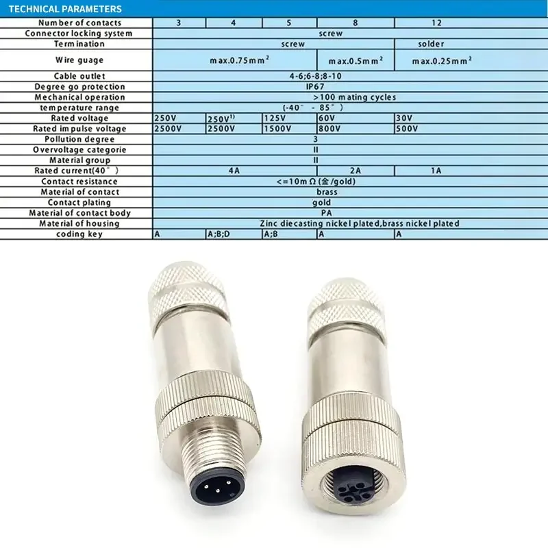 Enhance your industrial setup with this high-quality waterproof M12 connector. Its impressive build, versatile configurations, and corrosion-resistant metal shield make it perfect for signal sensor applications. Designed to last and engineered for safety, it ensures every connection is firm, waterproof, and dependable. By choosing this connector, you equip your system with a professional-grade component that guarantees performance and peace of mind. Trust in its certified quality and robust construction—your equipment deserves nothing less. Get yours today for a seamless and efficient connection experience.