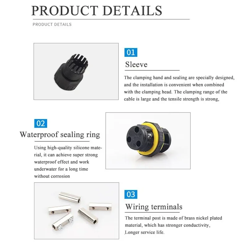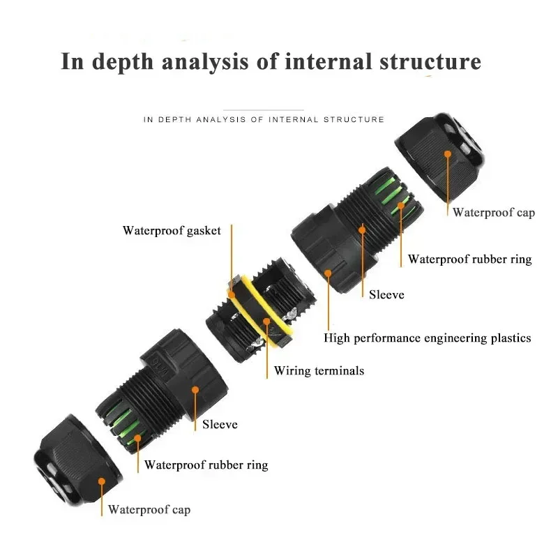 - Supports 2-pin and 3-pin configurations with wire diameters ranging from 3.5mm to 8mm, suitable for a variety of outdoor electrical applications.