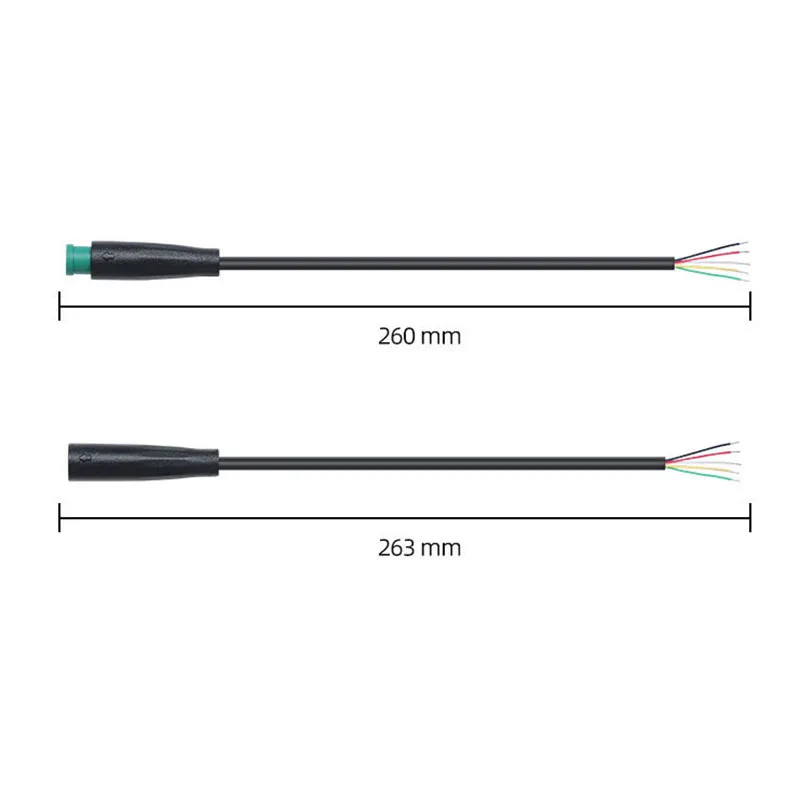 Experience reliable connectivity with this waterproof M6 connector set, perfect for electric bikes, solar panels, and sensor signals. Crafted with a sleek, cylindrical design, these connectors feature a smooth, matte black outer insulation that ensures durability and a professional appearance. Brightly colored caps—green, black, blue, orange, red, and teal—offer easy identification of pin configurations, enhancing usability. The connectors are compact, with a diameter of 6mm and a length of approximately 5mm. Each cable assembly measures 26cm, including the connector heads. Designed to withstand temperature ranges from -20°C to 80°C and rated at 1A, these connectors provide a secure, waterproof connection even in challenging environments. Their minimalist style combines functionality with aesthetic appeal, giving your project a modern edge.