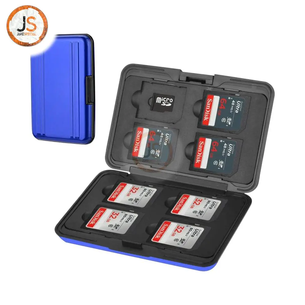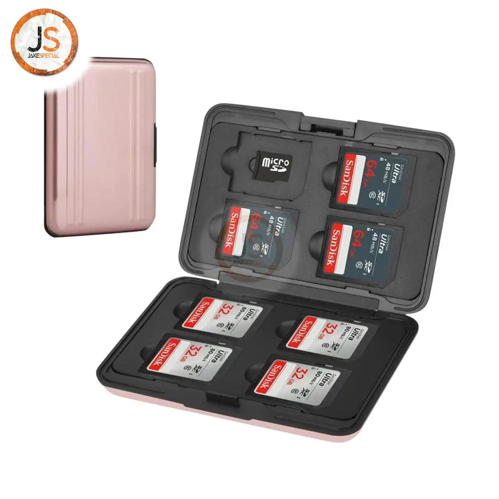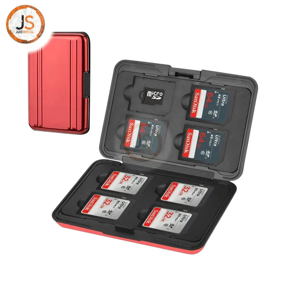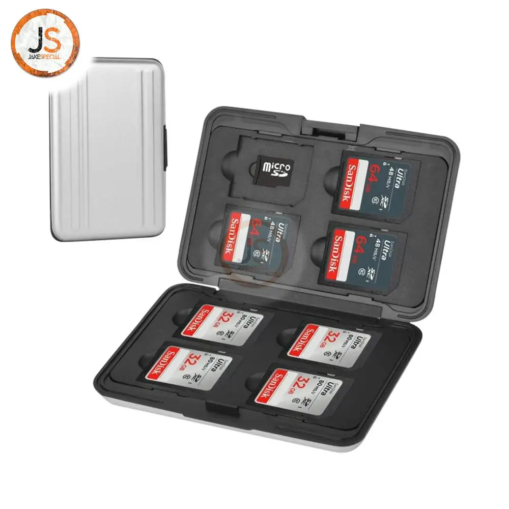 The Waterproof Memory Card Box is designed to securely store and protect your valuable SD and Micro SD cards. Featuring a sleek rectangular design with rounded edges, this case is primarily black with a smooth finish, complemented by a contrasting dark EVA foam interior that provides ample cushioning for up to eight memory cards. It includes four larger slots for SD cards and smaller slots for Micro SD cards, all ensuring protection from impacts and water damage. Available in stylish colors like Silver, Red, Pink, and Blue, this robust memory card bracket is an essential accessory for photographers and videographers seeking both functionality and style.