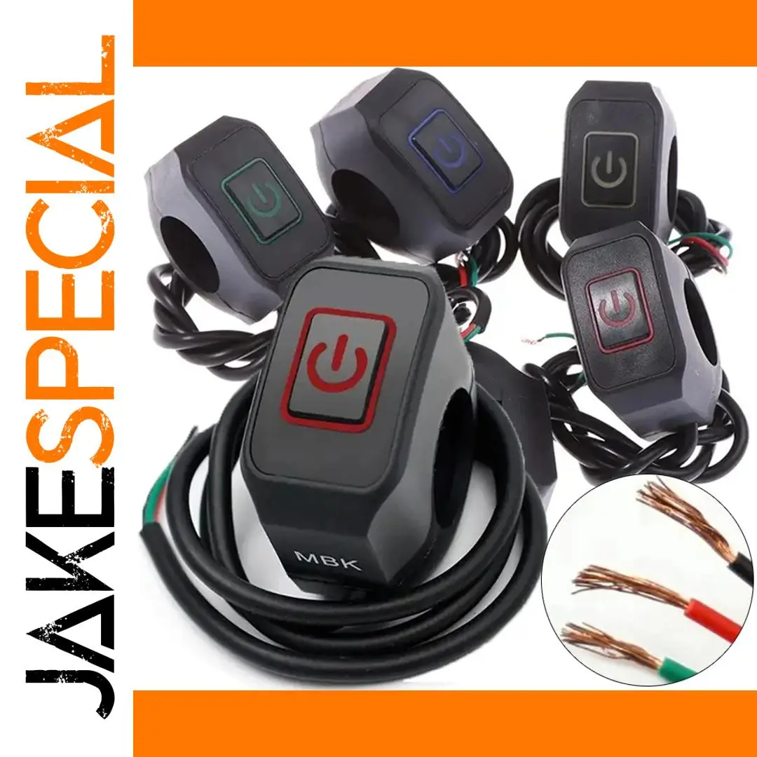 - Operates at 12V, designed as a reliable on/off switch for motorcycle headlights, ideal for modified handlebar controls.