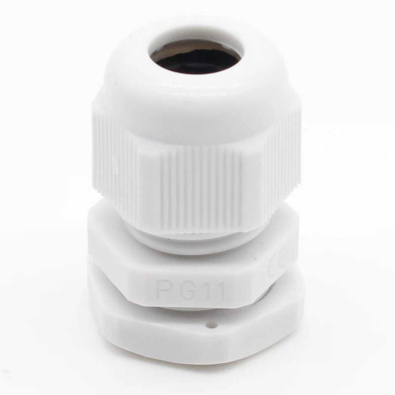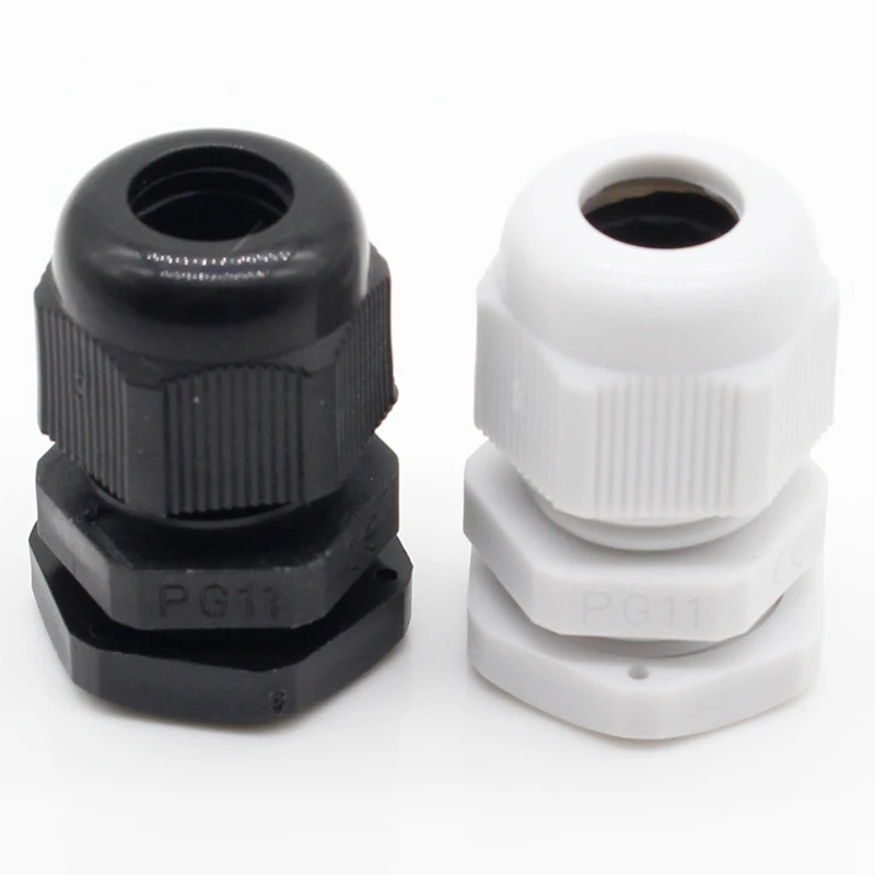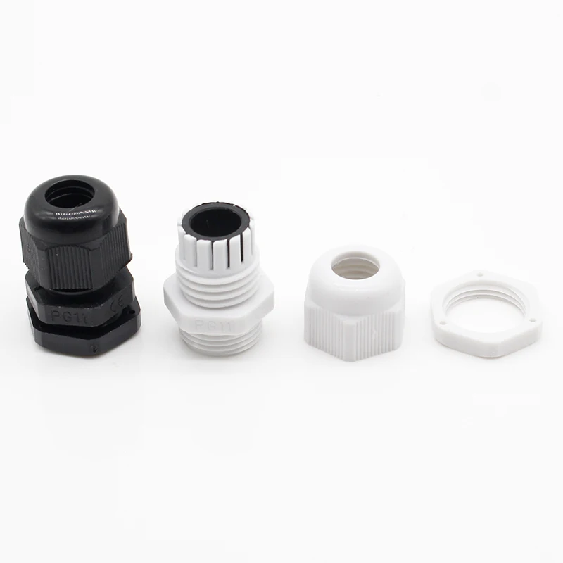 - Technical specifications include: nylon material, PG11 size, IP68 protection, suitable for 5-10mm cables, and available in black or white colors for aesthetic flexibility.