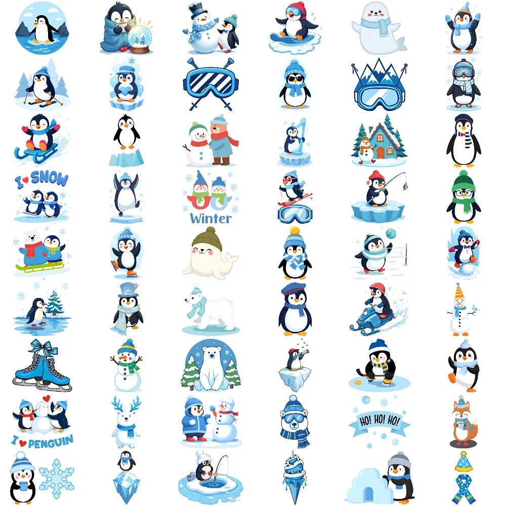 Transform your look with this set of 54 waterproof penguin-themed temporary tattoos, perfect for embracing festive winter vibes. Each tattoo showcases adorable, cartoon-style penguins engaged in activities like ice skating, snowboarding, and building snowmen. The detailed illustrations feature vibrant reds, greens, yellows, and cool shades of blue, white, and black, creating cheerful scenes against snowy backgrounds, icebergs, and pine trees. Designed for easy application and lasting 3-7 days, these tattoos let you add a playful, seasonal touch to arms, legs, or your body. Great for parties, holidays, or everyday fun, they ensure a lively and whimsical winter atmosphere wherever you go.
