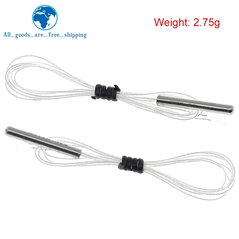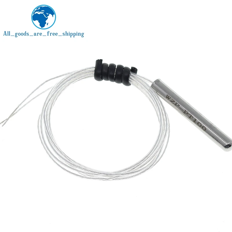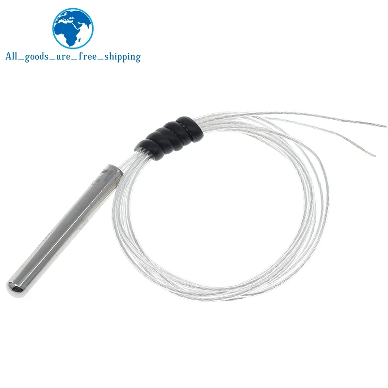 Experience precise temperature measurement with this waterproof platinum RTD sensor, designed for versatile industrial and laboratory applications. Featuring a sleek, cylindrical metal probe with a shiny silver finish, it exudes durability and modern aesthetics. The 1/3 piece PT100 resistor element ensures high accuracy across a wide range from -20°C to 450°C. The insulated fiberglass shielding adds robustness and high-temperature resistance, making it suitable for demanding environments. The 50 cm flexible cable allows easy connection to electronic modules, while the organized black plastic clamps maintain tidy wiring. Whether you need a single sensor or multiple units, this product offers reliability, precision, and a refined design you can trust for your temperature control tasks.