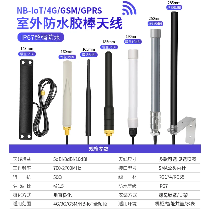 Experience reliable connectivity with this this waterproof rubber rod antenna, purpose-built for NB-IoT water meter readings. Crafted with precision, its slim 16.5 cm or 25 cm fiberglass design ensures durability and optimal signal gain at 433 MHz. Available in multiple color options like 4G FRP, waterproof head, ultrasonic model, and more, it seamlessly integrates with various installation environments. Whether mounted on a cabinet or embedded in infrastructure, its minimalist, streamlined form offers a sleek aesthetic. The antenna’s sturdy construction and flexible cable options (1 m, 1.5 m, 3 m) make installation straightforward and dependable. Designed to meet CE and RoHS standards, this antenna combines technical excellence with practical, modern design for long-term outdoor performance.
