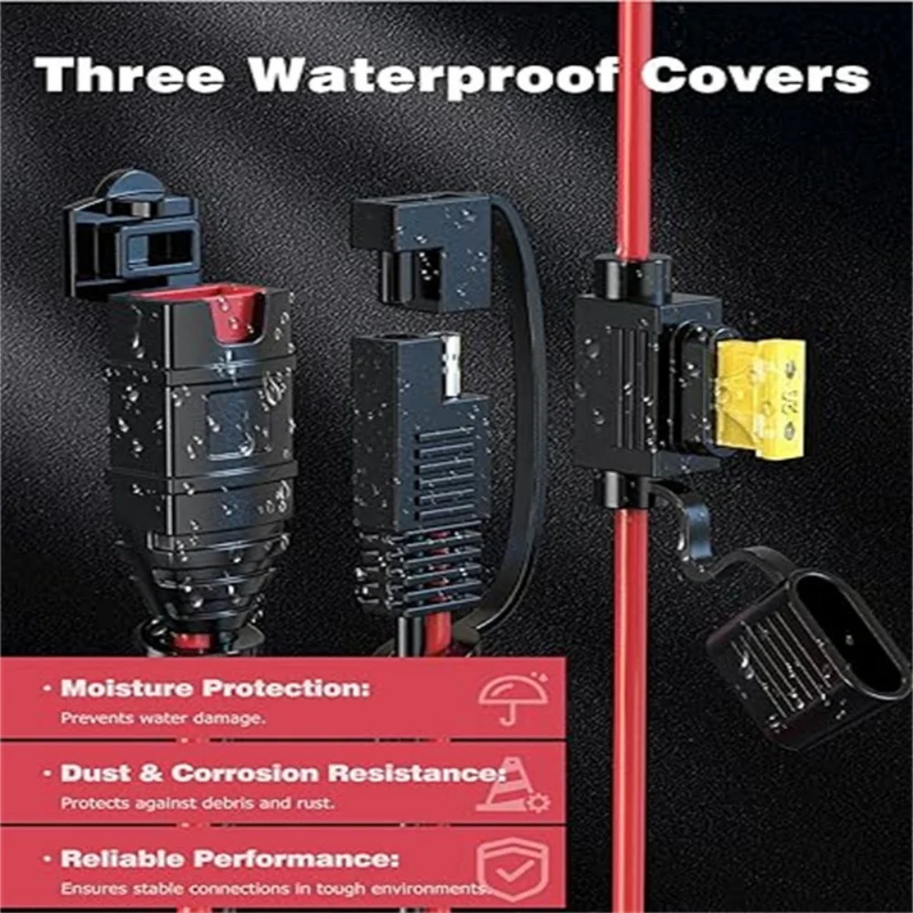 - Technical specifications: compatible with various smart battery chargers and automotive devices, rated for 20A fuse capacity, robust waterproof design, and suited for high-current applications.