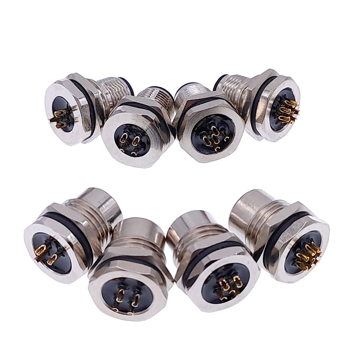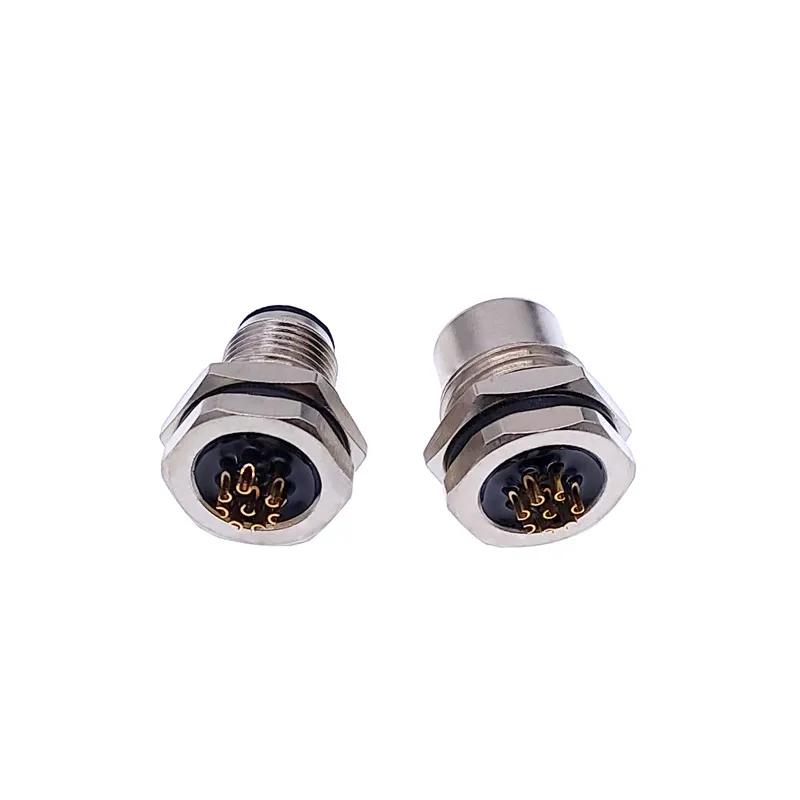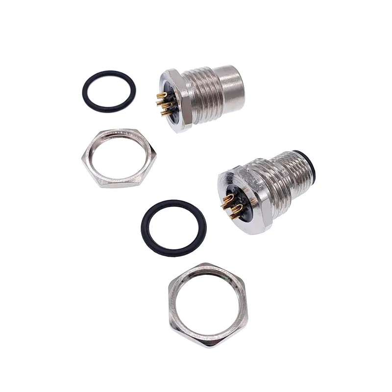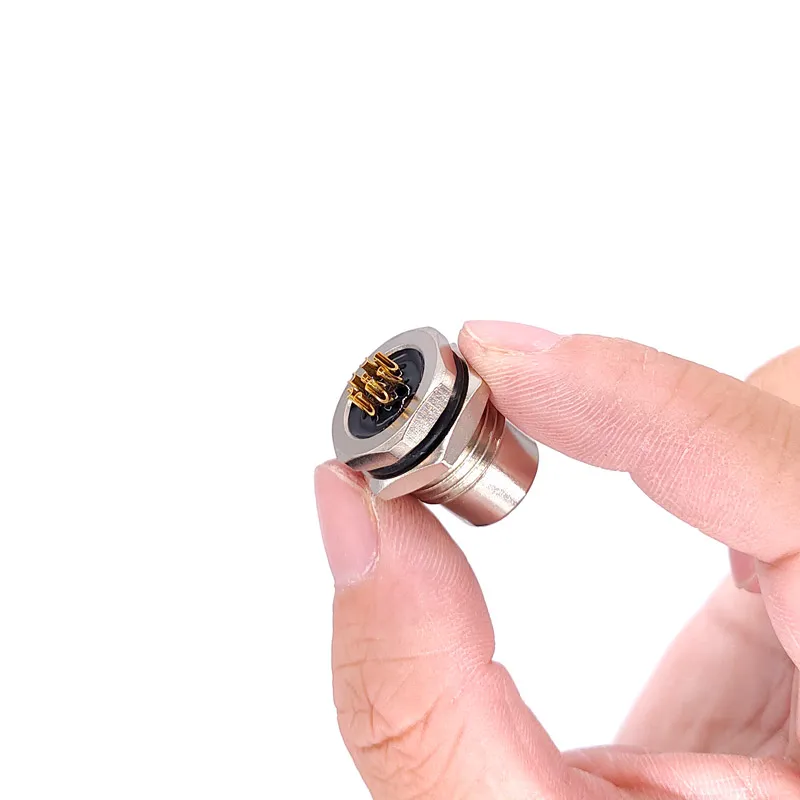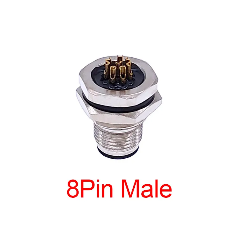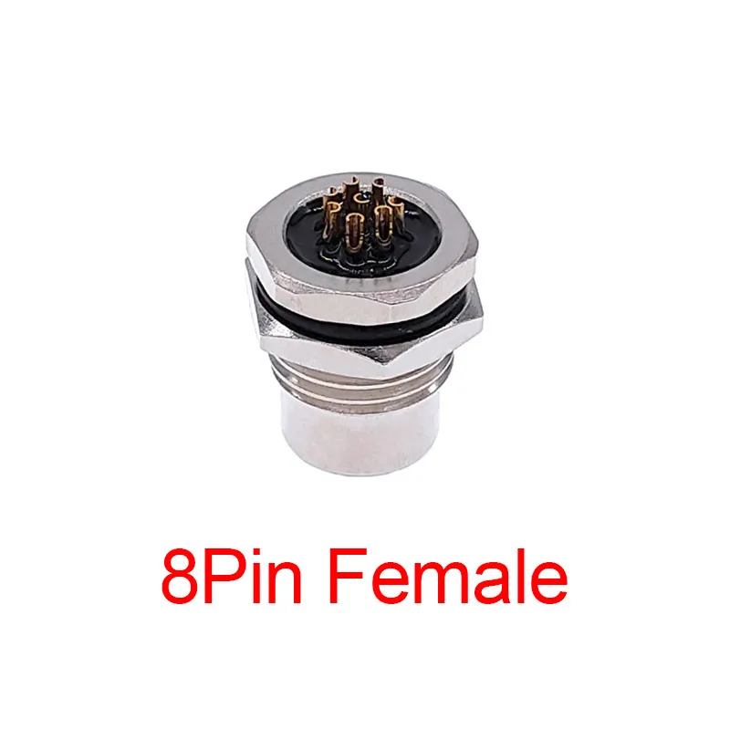 Enhance your electronic setups with this durable waterproof sensor connector, designed for precision and reliability. Featuring a 16mm mounting hole and compatible with M16 and M12 screw threads, it supports various configurations including 3-pin, 4-pin, 5-pin, and 8-pin variants. Available in male and female versions, each connector operates at 24V and is built with high-quality materials to ensure waterproof sealing and resistance to corrosion. Its sleek, industrial aesthetic combines polished silver-toned hexagonal shells with black contact bases and gold-plated pins, offering a professional, technical look. Ideal for secure sensor connections demanding robustness and waterproof performance.