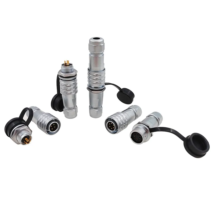 Experience reliable power transmission with this high-quality waterproof SF12 connector, designed for demanding environments. Crafted with durable metal in sleek silver, it features a cylindrical shape with ridges for easy handling and sealing. Its versatile design includes multiple configurations (2, 3, 4, 5, 6, 7, or 9 pins) to suit various applications. The connectors are available in both male and female options, with gold-plated contact points that ensure stable, corrosion-resistant connections. Equipped with black rubber sealing caps and attached cords, this product guarantees waterproofing, rated IP67. Compatible with voltage options of 24V, as well as 1V, 2V, 4V, 5V, and 12V, it is suitable for outdoor and industrial use. Its robust construction makes it ideal for equipment power applications requiring utmost durability and reliability.